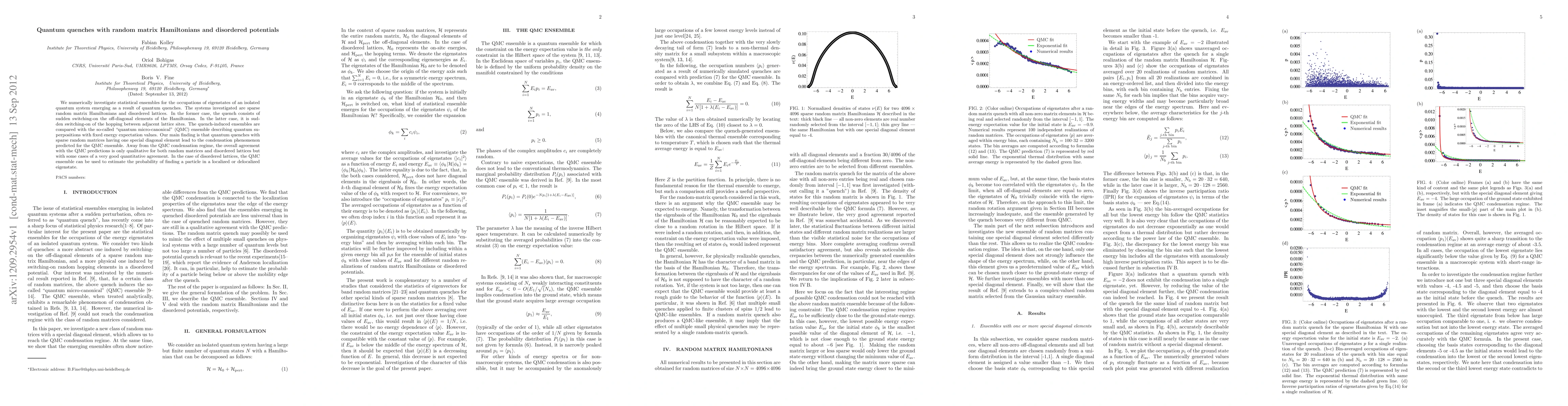 Quantum quenches with random matrix Hamiltonians and disordered potentials show mixed results in reproducing quantum micro-canonical predictions, but in one special case, they lead to condensation phenomenon.