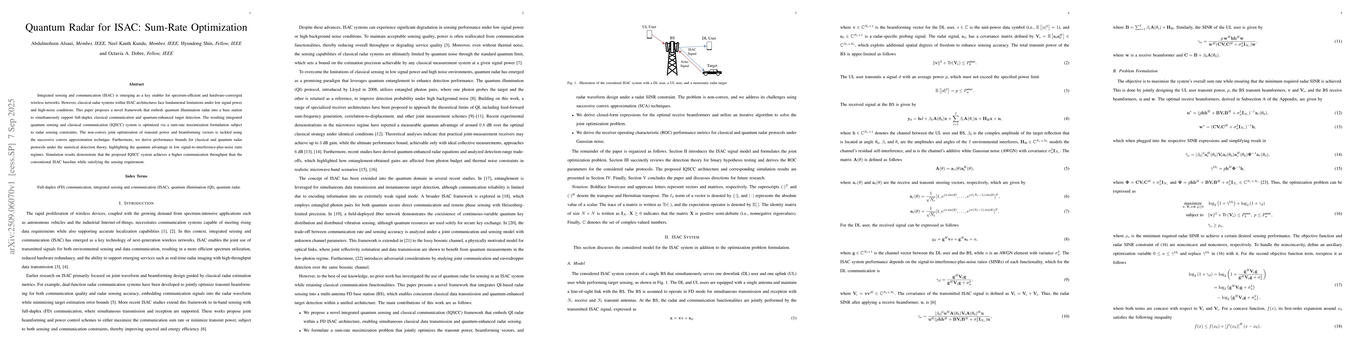 Integrated sensing and communication (ISAC) is emerging as a key enabler for spectrum-efficient and hardware-converged wireless networks. However, classical radar systems within ISAC architectures face fundamental limitations under low signal power and high-noise conditions. This paper proposes a novel framework that embeds quantum illumination radar into a base station to simultaneously support full-duplex classical communication and quantum-enhanced target detection. The resulting integrated quantum sensing and classical communication (IQSCC) system is optimized via a sum-rate maximization formulation subject to radar sensing constraints. The non-convex joint optimization of transmit power and beamforming vectors is tackled using the successive convex approximation technique. Furthermore, we derive performance bounds for classical and quantum radar protocols under the statistical detection theory, highlighting the quantum advantage in low signal-to-interference-plus-noise ratio regimes. Simulation results demonstrate that the proposed IQSCC system achieves a higher communication throughput than the conventional ISAC baseline while satisfying the sensing requirement.