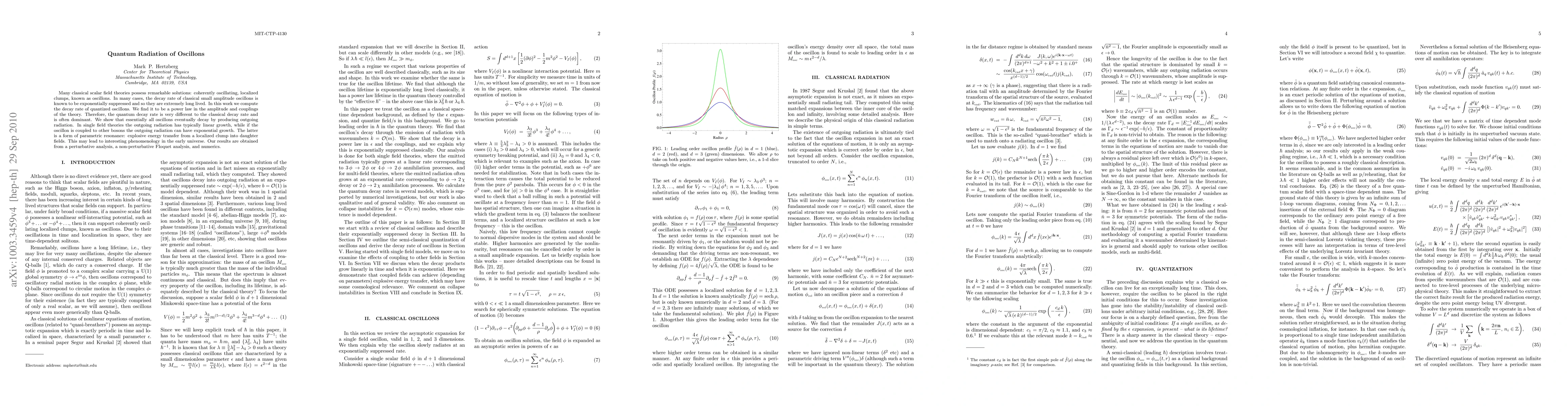 This paper investigates the quantum decay rate of oscillons, localized, oscillating clumps in classical scalar field theories, finding it to be a power law dependent on amplitude and couplings. Quantum decay often dominates classical decay, leading to oscillon decay via radiation, which can exhibit linear or exponential growth depending on coupling to other bosons, potentially impacting early universe phenomenology.