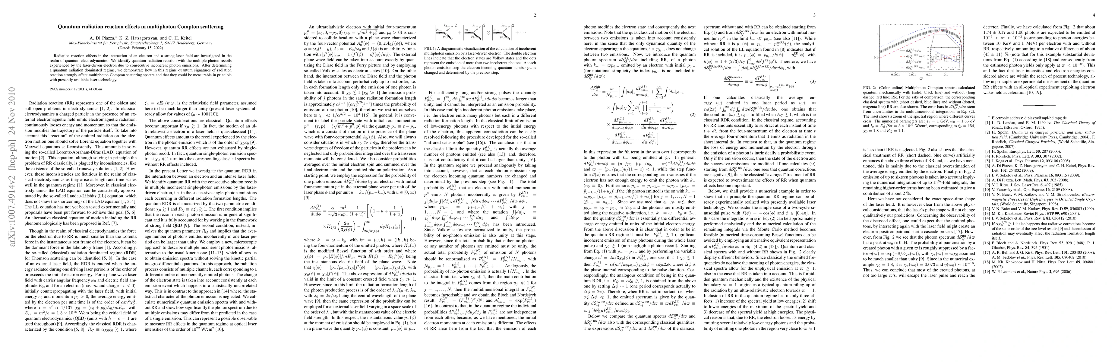 This paper investigates quantum radiation reaction effects in multiphoton Compton scattering, identifying them with multiple photon recoils from incoherent emissions in a strong laser field. It demonstrates that quantum signatures of radiation reaction significantly influence multiphoton Compton scattering spectra and can be detected with current laser technology.