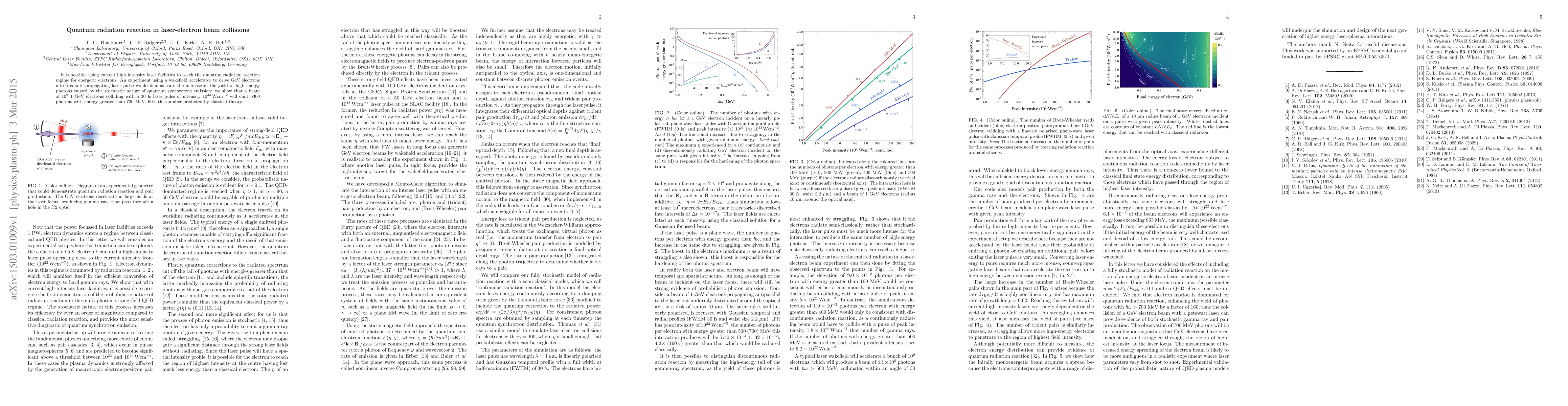 It is possible using current high intensity laser facilities to reach the quantum radiation reaction regime for energetic electrons. An experiment using a wakefield accelerator to drive GeV electrons into a counterpropagating laser pulse would demonstrate the increase in the yield of high energy photons caused by the stochastic nature of quantum synchrotron emission: we show that a beam of $10^9$ 1 GeV electrons colliding with a 30 fs laser pulse of intensity $10^{22}~\text{Wcm}^{-2}$ will emit 6300 photons with energy greater than 700 MeV, $60\times$ the number predicted by classical theory.