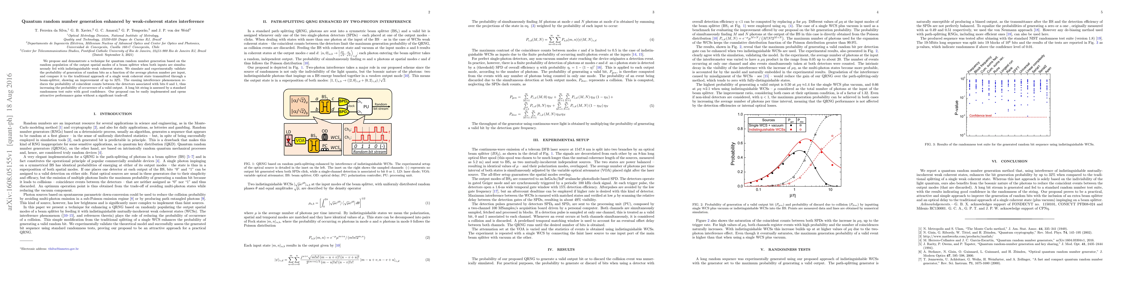 This paper proposes a quantum random number generation technique using weak-coherent states interference at a beam splitter, demonstrating a 32% improvement over traditional methods. The interference reduces coincident counts, enhancing randomness and validating the method with a randomness test suite.