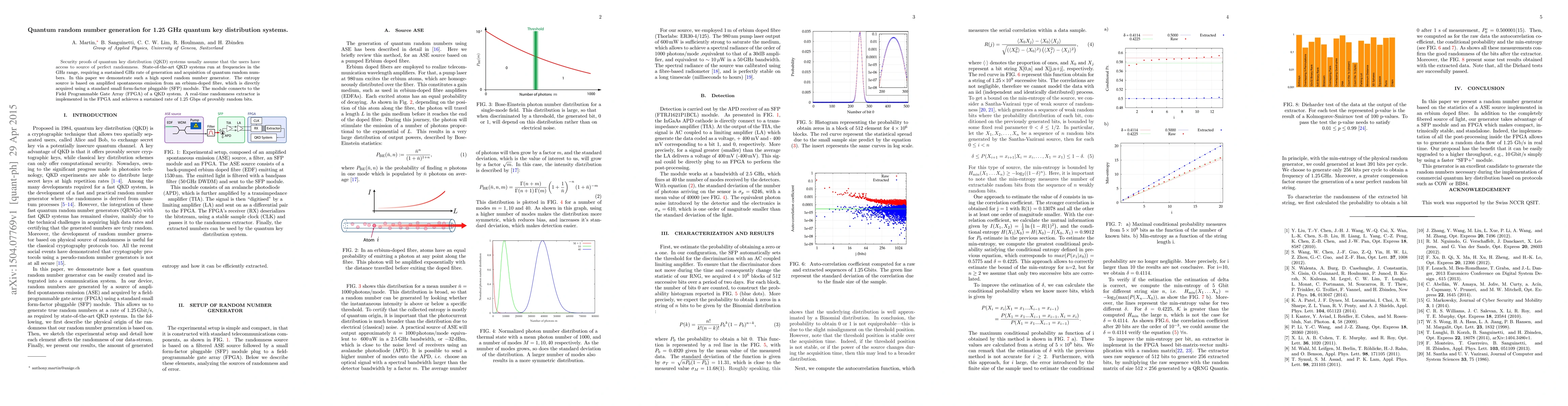 This paper presents a high-speed quantum random number generator (1.25 Gbps) for GHz-range quantum key distribution (QKD) systems, using amplified spontaneous emission from an erbium-doped fibre as the entropy source. The generator, implemented on an FPGA, directly acquires and extracts random bits in real-time, addressing the need for a sustained GHz rate of generation and acquisition in state-of-the-art QKD systems.