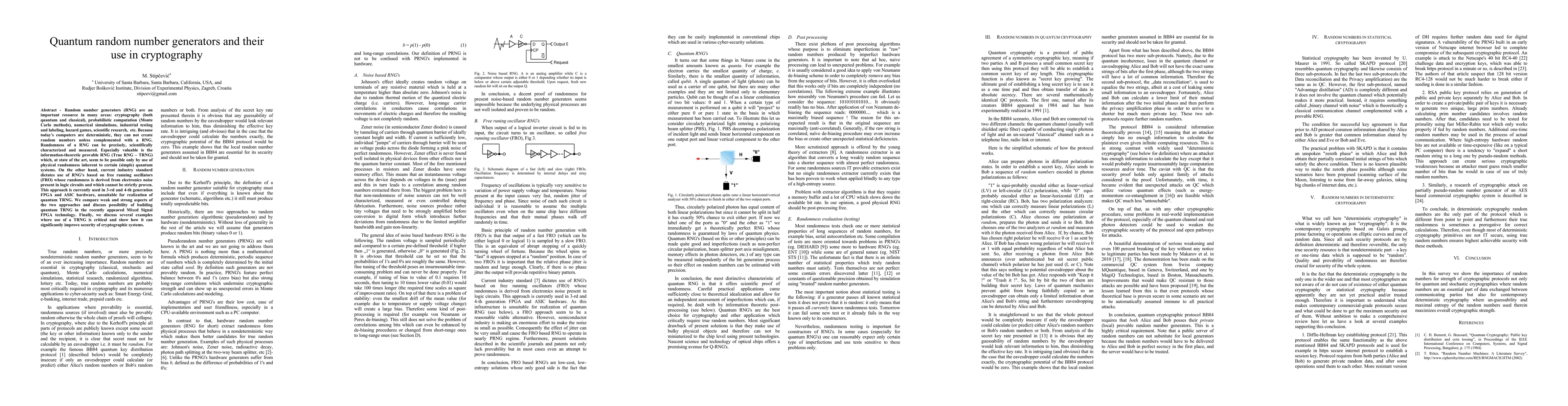 Random number generators (RNG) are an important resource in many areas: cryptography (both quantum and classical), probabilistic computation (Monte Carlo methods), numerical simulations, industrial testing and labeling, hazard games, scientific research, etc. Because today's computers are deterministic, they can not create random numbers unless complemented with a RNG. Randomness of a RNG can be precisely, scientifically characterized and measured. Especially valuable is the information-theoretic provable RNG (True RNG - TRNG) which, at state of the art, seem to be possible only by use of physical randomness inherent to certain (simple) quantum systems. On the other hand, current industry standard dictates use of RNG's based on free running oscillators (FRO) whose randomness is derived from electronics noise present in logic circuits and which cannot be strictly proven. This approach is currently used in 3-rd and 4-th generation FPGA and ASIC hardware, unsuitable for realization of quantum TRNG. We compare weak and strong aspects of the two approaches and discuss possibility of building quantum TRNG in the recently appeared Mixed Signal FPGA technology. Finally, we discuss several examples where use of a TRNG is critical and show how it can significantly improve security of cryptographic systems.