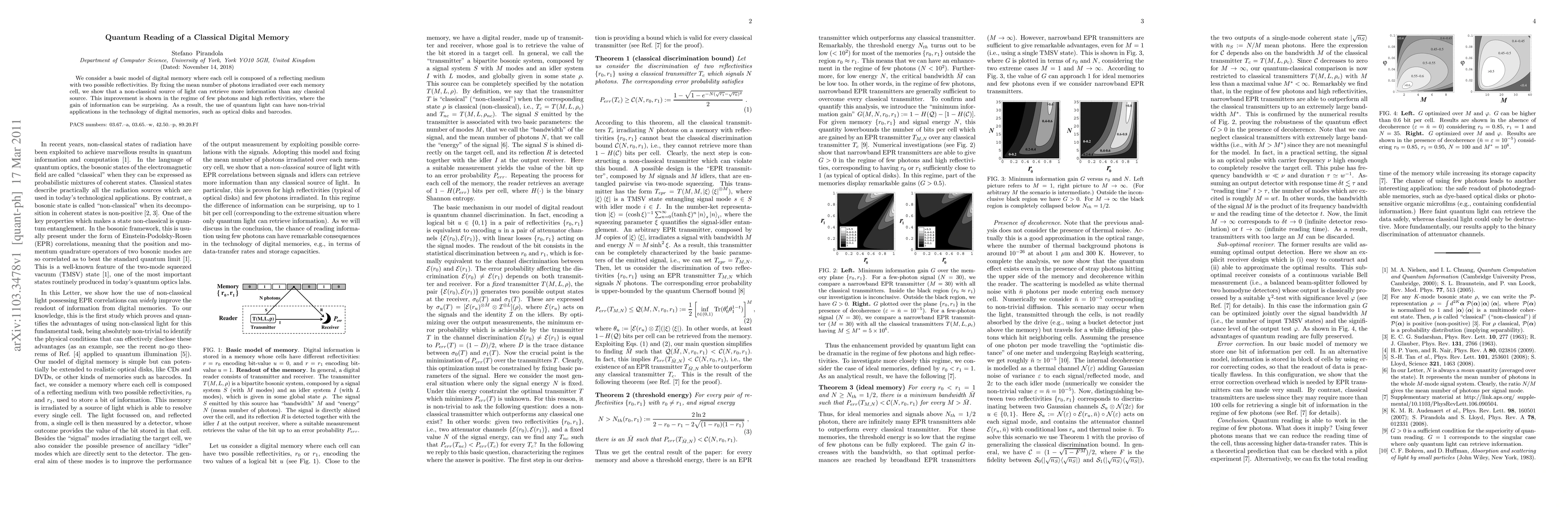 We consider a basic model of digital memory where each cell is composed of a reflecting medium with two possible reflectivities. By fixing the mean number of photons irradiated over each memory cell, we show that a non-classical source of light can retrieve more information than any classical source. This improvement is shown in the regime of few photons and high reflectivities, where the gain of information can be surprising. As a result, the use of quantum light can have non-trivial applications in the technology of digital memories, such as optical disks and barcodes.