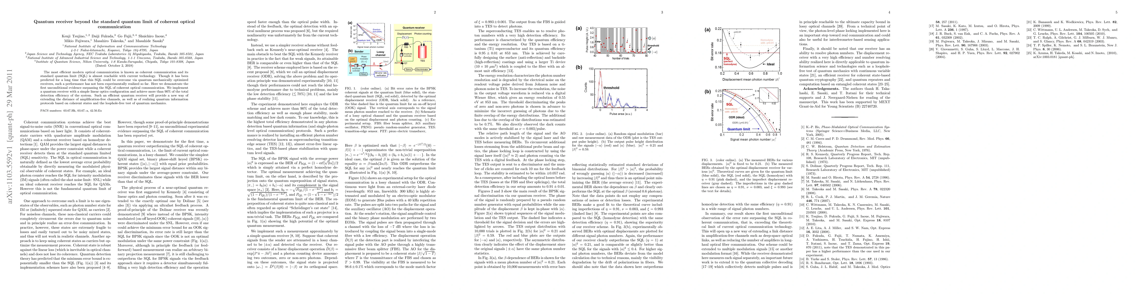 The most efficient modern optical communication is known as coherent communication and its standard quantum limit (SQL) is almost reachable with current technology. Though it has been predicted for a long time that this SQL could be overcome via quantum mechanically optimized receivers, such a performance has not been experimentally realized so far. Here we demonstrate the first unconditional evidence surpassing the SQL of coherent optical communication. We implement a quantum receiver with a simple linear optics configuration and achieve more than 90% of the total detection efficiency of the system. Such an efficient quantum receiver will provide a new way of extending the distance of amplification-free channels, as well as of realizing quantum information protocols based on coherent states and the loophole-free test of quantum mechanics.