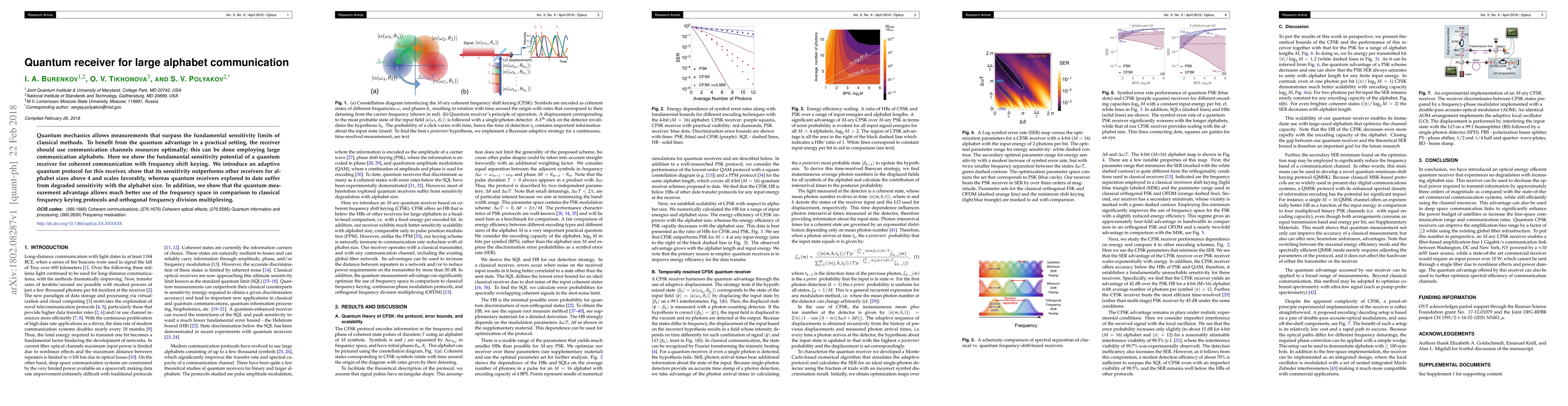 This paper presents a quantum receiver that optimally utilizes large communication alphabets to surpass classical sensitivity limits in coherent communication. The introduced adaptive quantum protocol demonstrates superior sensitivity for alphabet sizes above 4 and scales better than previous quantum receivers, while also enabling more efficient use of frequency space compared to classical methods.