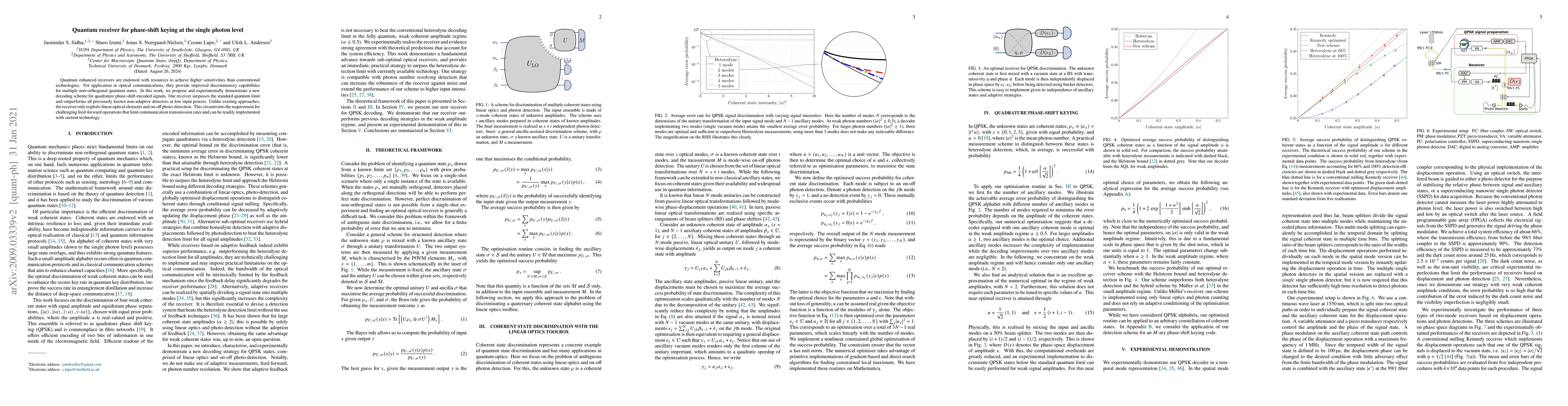 Quantum enhanced receivers are endowed with resources to achieve higher sensitivities than conventional technologies. For application in optical communications, they provide improved discriminatory capabilities for multiple non-orthogonal quantum states. In this work, we propose and experimentally demonstrate a new decoding scheme for quadrature phase-shift encoded signals. Our receiver surpasses the standard quantum limit and outperforms all previously known non-adaptive detectors at low input powers. Unlike existing approaches, the receiver only exploits linear optical elements and on-off photo-detection. This circumvents the requirement for challenging feed-forward operations that limit communication transmission rates and can be readily implemented with current technology.