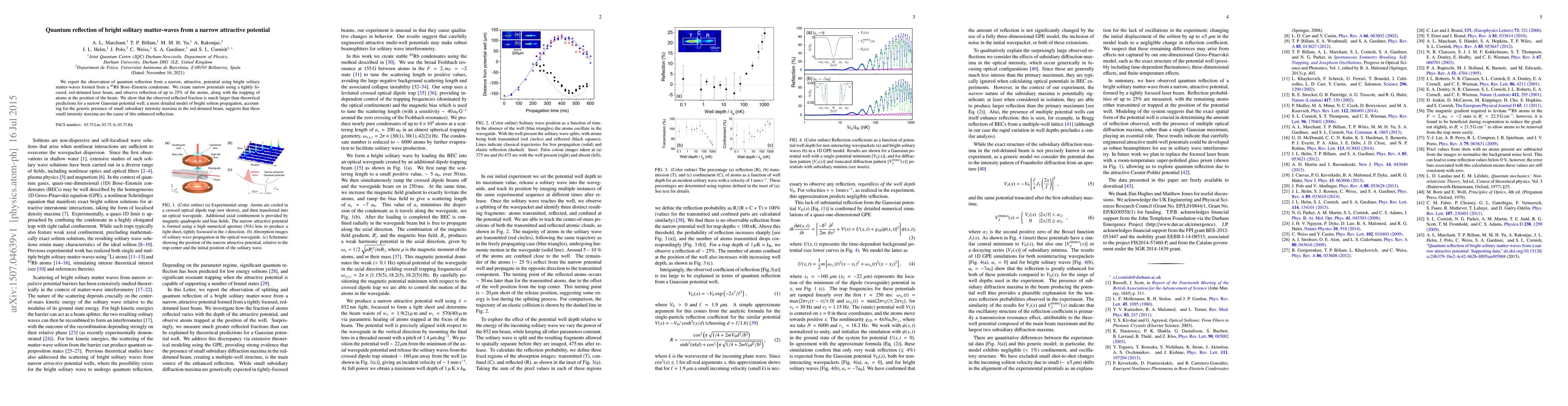 This paper reports the observation of quantum reflection from a narrow, attractive potential using bright solitary matter-waves from an 85Rb Bose-Einstein condensate, finding up to 25% reflection, which exceeds theoretical predictions. Enhanced reflection is attributed to small subsidiary intensity maxima in the red-detuned laser beam.