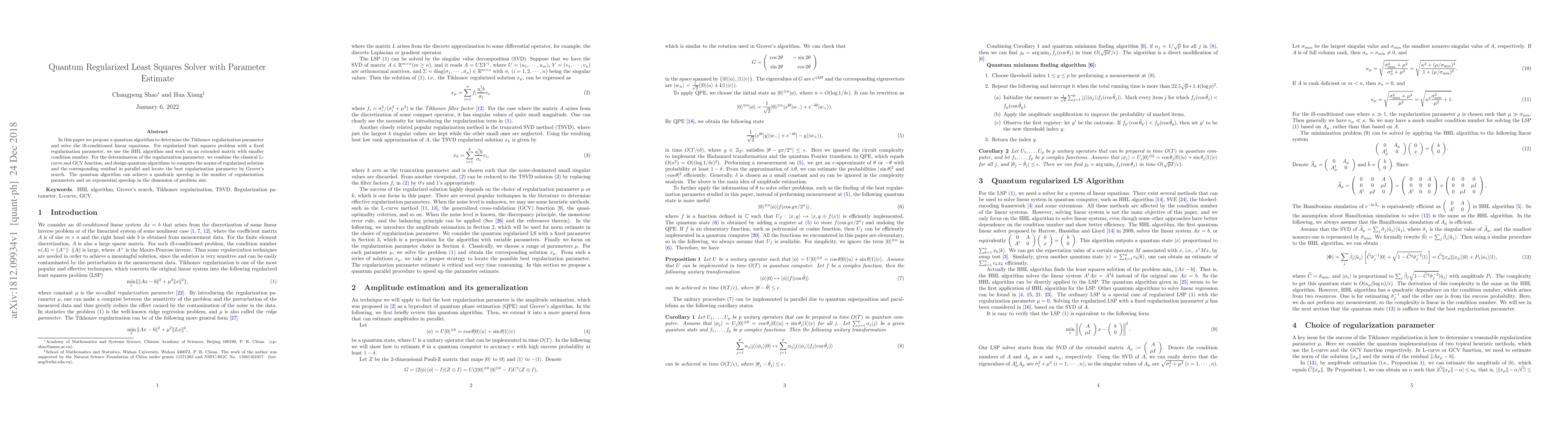 In this paper we propose a quantum algorithm to determine the Tikhonov regularization parameter and solve the ill-conditioned linear equations, for example, arising from the finite element discretization of linear or nonlinear inverse problems. For regularized least squares problem with a fixed regularization parameter, we use the HHL algorithm and work on an extended matrix with smaller condition number. For the determination of the regularization parameter, we combine the classical L-curve and GCV function, and design quantum algorithms to compute the norms of regularized solution and the corresponding residual in parallel and locate the best regularization parameter by Grover's search. The quantum algorithm can achieve a quadratic speedup in the number of regularization parameters and an exponential speedup in the dimension of problem size.