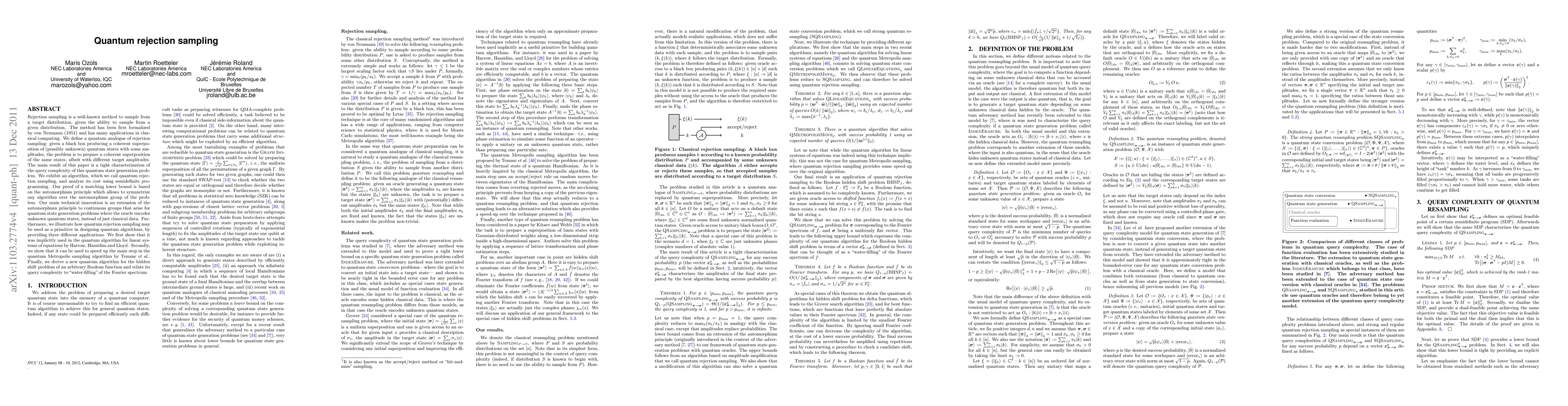 This paper introduces a quantum analogue of rejection sampling, defining a method to prepare a coherent superposition of quantum states with specified target amplitudes. The authors present an algorithm called quantum rejection sampling and analyze its complexity, proving a matching lower bound using an extended automorphism principle for continuous groups. They also demonstrate its utility in quantum algorithms for linear systems, speeding up the quantum Metropolis sampling, and developing a new quantum algorithm for the hidden shift problem.