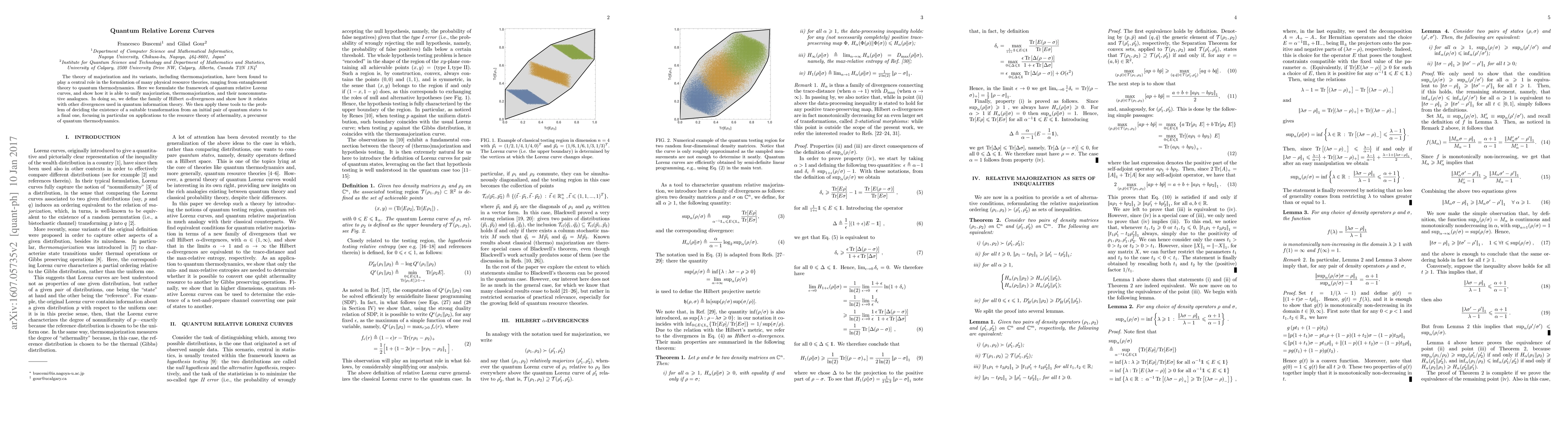 The theory of majorization and its variants, including thermomajorization, have been found to play a central role in the formulation of many physical resource theories, ranging from entanglement theory to quantum thermodynamics. Here we formulate the framework of quantum relative Lorenz curves, and show how it is able to unify majorization, thermomajorization, and their noncommutative analogues. In doing so, we define the family of Hilbert $\alpha$-divergences and show how it relates with other divergences used in quantum information theory. We then apply these tools to the problem of deciding the existence of a suitable transformation from an initial pair of quantum states to a final one, focusing in particular on applications to the resource theory of athermality, a precursor of quantum thermodynamics.