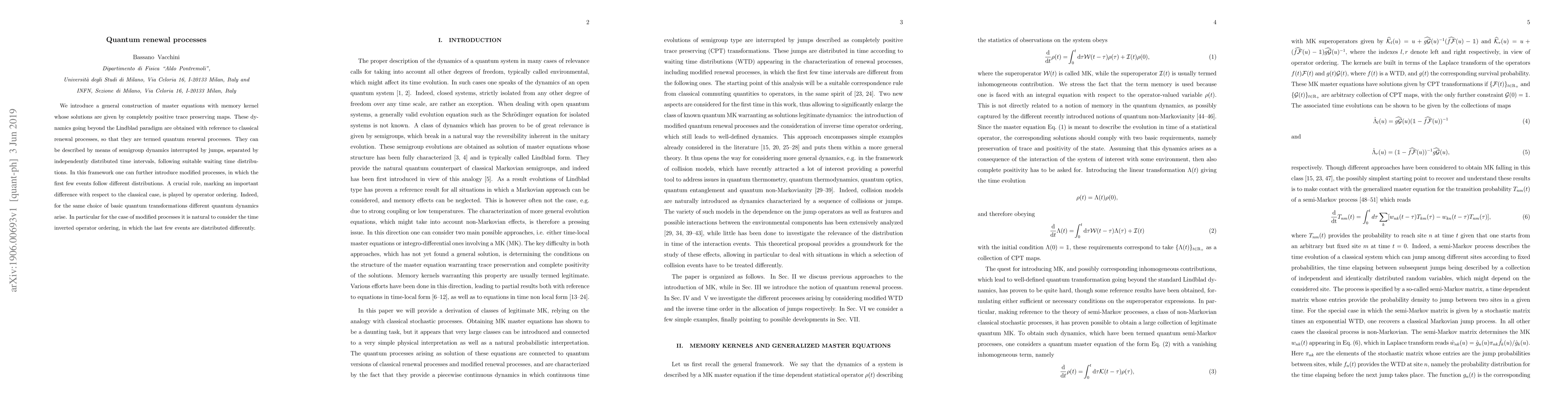 Researchers introduce quantum renewal processes, a new framework for modeling complex quantum systems with memory, allowing for semigroup dynamics interrupted by jumps and modified processes with different waiting time distributions.