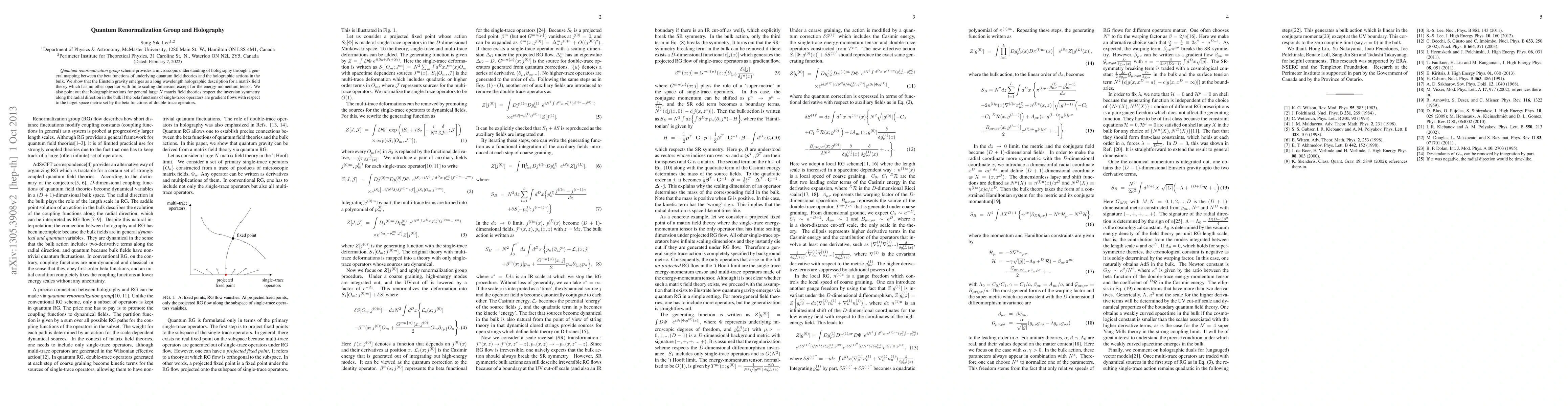 Quantum renormalization group scheme provides a microscopic understanding of holography through a general mapping between the beta functions of underlying quantum field theories and the holographic actions in the bulk. We show that the Einstein gravity emerges as a long wavelength holographic description for a matrix field theory which has no other operator with finite scaling dimension except for the energy-momentum tensor. We also point out that holographic actions for general large N matrix field theories respect the inversion symmetry along the radial direction in the bulk if the beta functions of single-trace operators are gradient flows with respect to the target space metric set by the beta functions of double-trace operators.