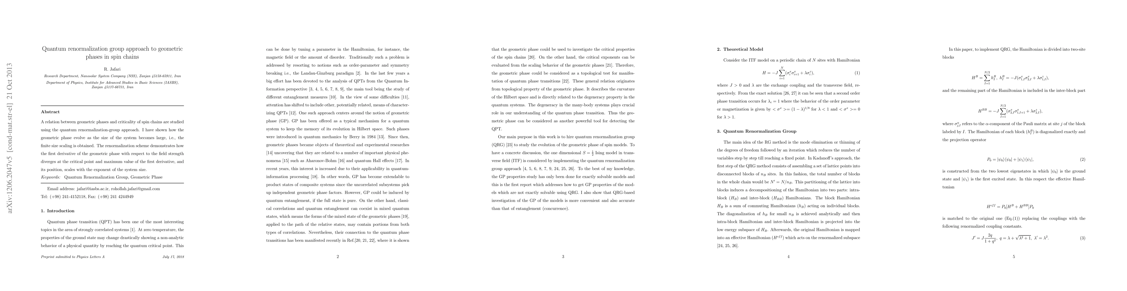 This paper employs a quantum renormalization-group approach to investigate the relationship between geometric phases and criticality in spin chains. It reveals how geometric phases evolve with system size, showing that the first derivative of the geometric phase diverges at the critical point, with its scaling behavior linked to the critical properties of the model.