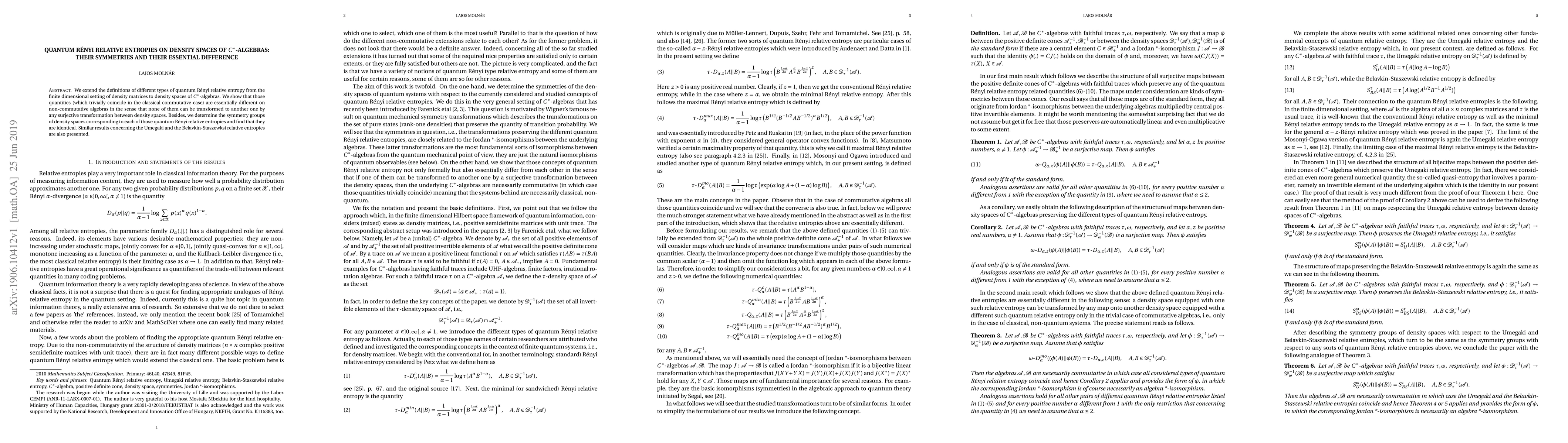 Quantum Rényi relative entropies on density spaces of C*-algebras exhibit essential differences that cannot be transformed into one another through any surjective transformation, despite having identical symmetry groups.