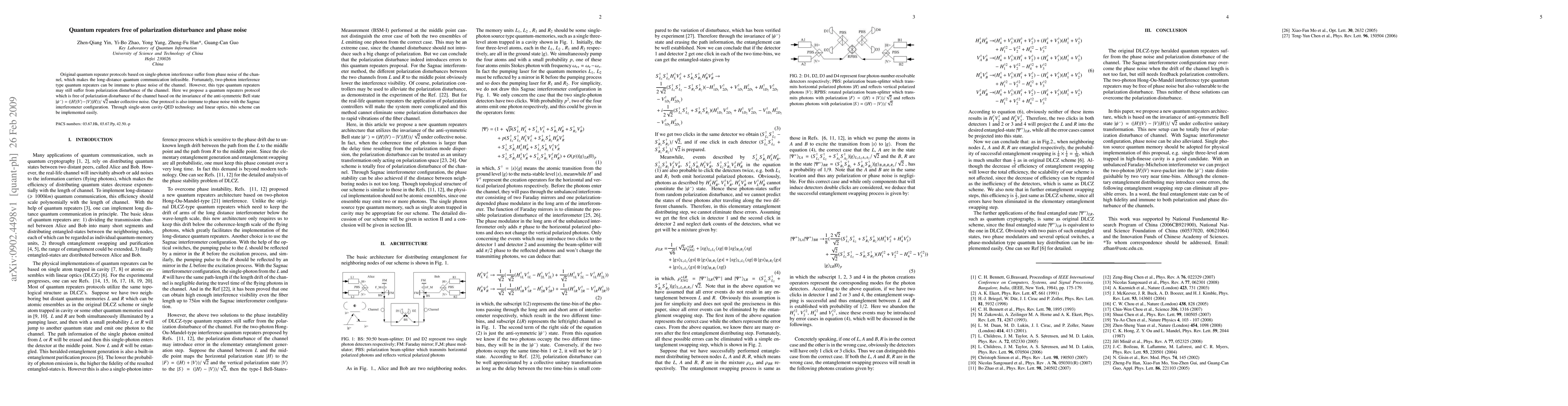 This paper proposes a quantum repeater protocol that is immune to both polarization disturbance and phase noise, utilizing the anti-symmetric Bell state and Sagnac interferometer configuration. The protocol leverages single-atom cavity-QED technology and linear optics for practical implementation.
