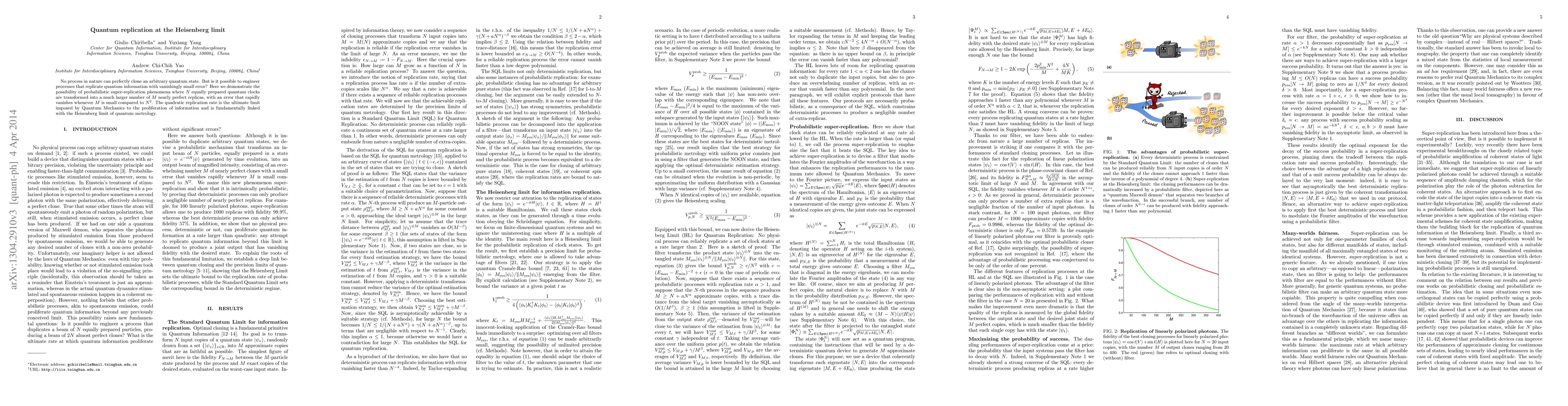 This paper explores the feasibility of quantum replication with minimal error, demonstrating a probabilistic super-replication process where N quantum clocks can be transformed into M nearly perfect replicas, with error diminishing as M approaches the square of N. This quadratic replication rate represents the ultimate quantum mechanical limit tied to the Heisenberg limit in quantum metrology.
