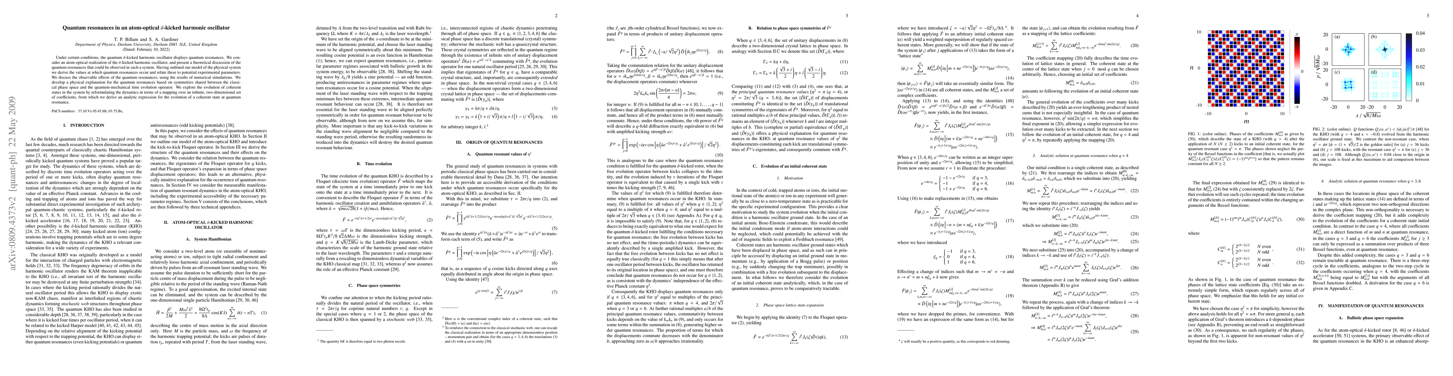 This paper investigates quantum resonances in an atom-optical delta-kicked harmonic oscillator, deriving conditions for their occurrence and exploring their observable effects through numerical simulations. It provides an analytic explanation for these resonances based on symmetries in classical and quantum dynamics.