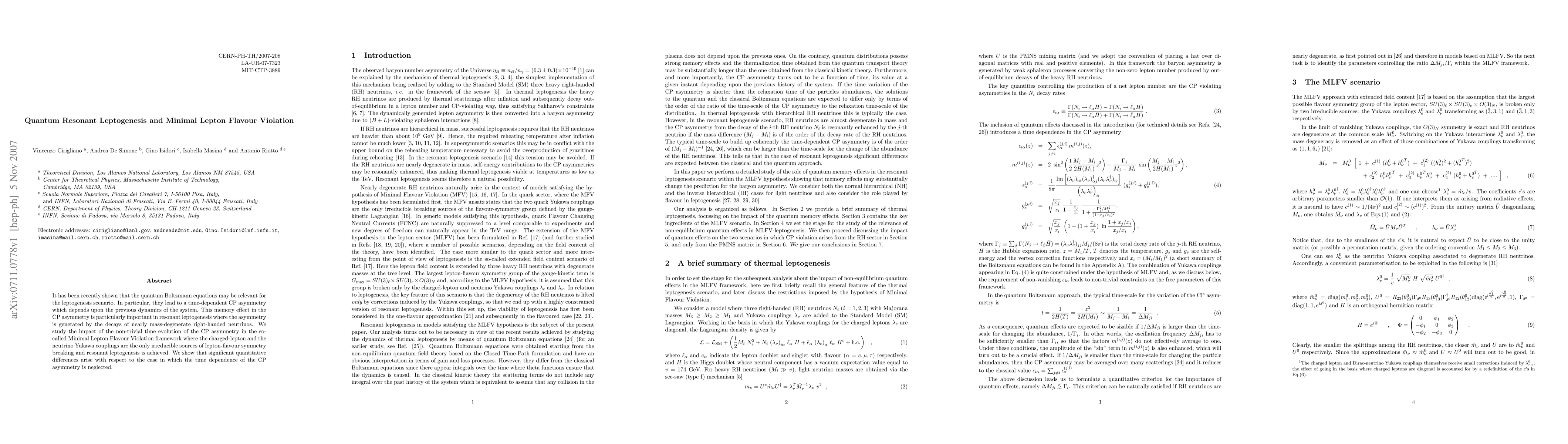 Summary: This paper explores quantum resonant leptogenesis within the Minimal Lepton Flavour Violation framework, highlighting the importance of time-dependent CP asymmetry generated by right-handed neutrino decays, and demonstrating significant quantitative differences when accounting for this effect compared to static assumptions.