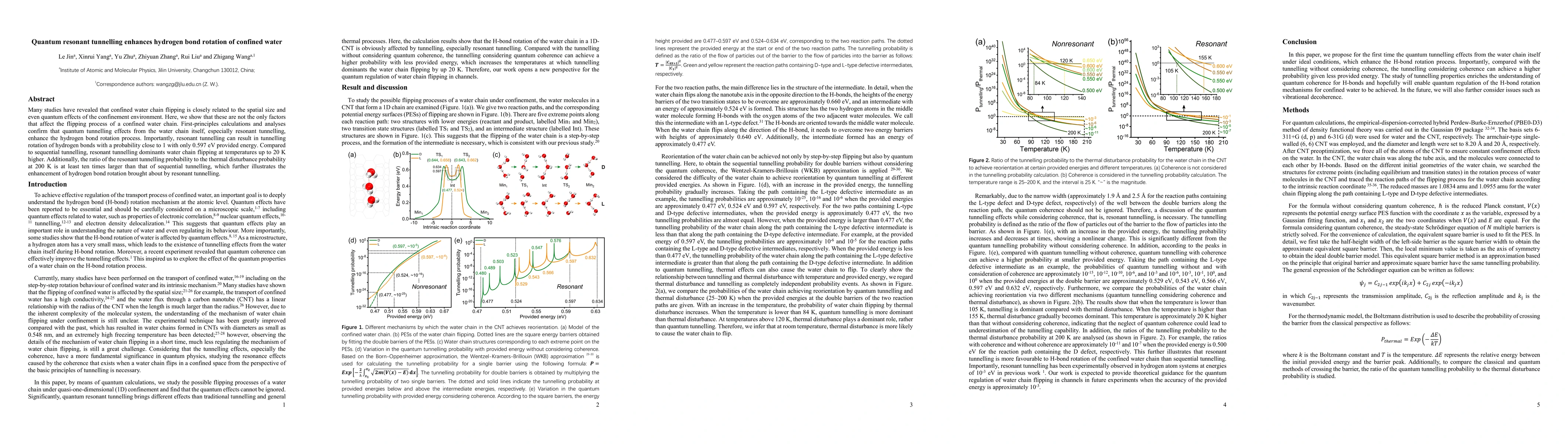 This study demonstrates that quantum resonant tunnelling significantly enhances hydrogen bond rotation in confined water chains, with resonant tunnelling dominating over sequential tunnelling, especially at temperatures up to 20 K higher, and showing a much higher probability ratio at 200 K.