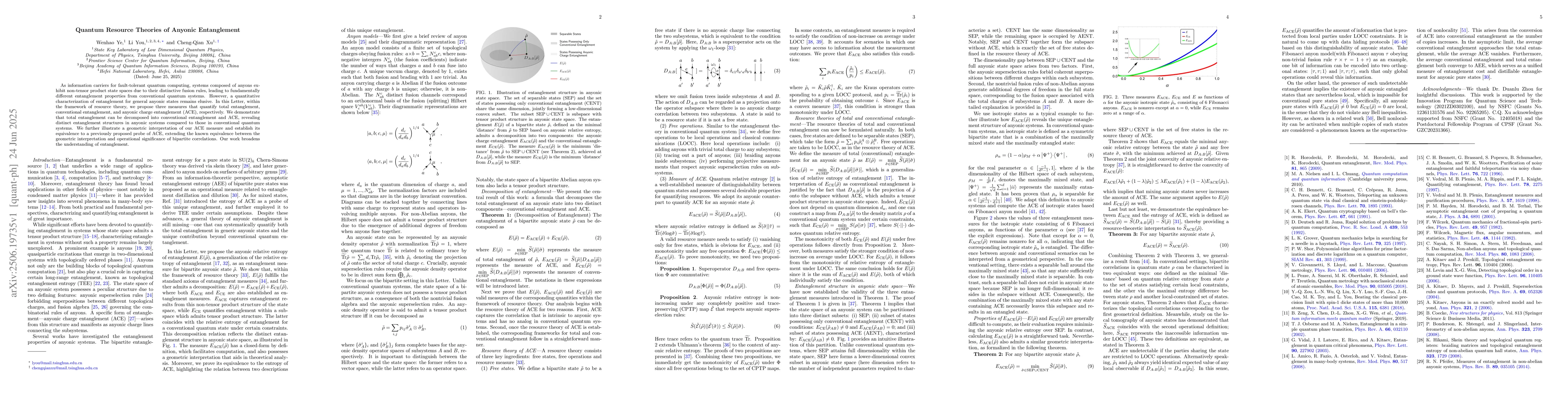As information carriers for fault-tolerant quantum computing, systems composed of anyons exhibit non-tensor product state spaces due to their distinctive fusion rules, leading to fundamentally different entanglement properties from conventional quantum systems. However, a quantitative characterization of entanglement for general anyonic states remains elusive. In this Letter, within the framework of resource theory, we propose three measures that quantify total entanglement, conventional entanglement, and anyonic charge entanglement (ACE), respectively. We demonstrate that total entanglement can be decomposed into conventional entanglement and ACE, revealing distinct entanglement structures in anyonic systems compared to those in conventional quantum systems. We further illustrate a geometric interpretation of our ACE measure and establish its equivalence to a previously proposed probe of ACE, extending the known equivalence between the geometric interpretation and operational significance of bipartite correlations. Our work broadens the understanding of entanglement.