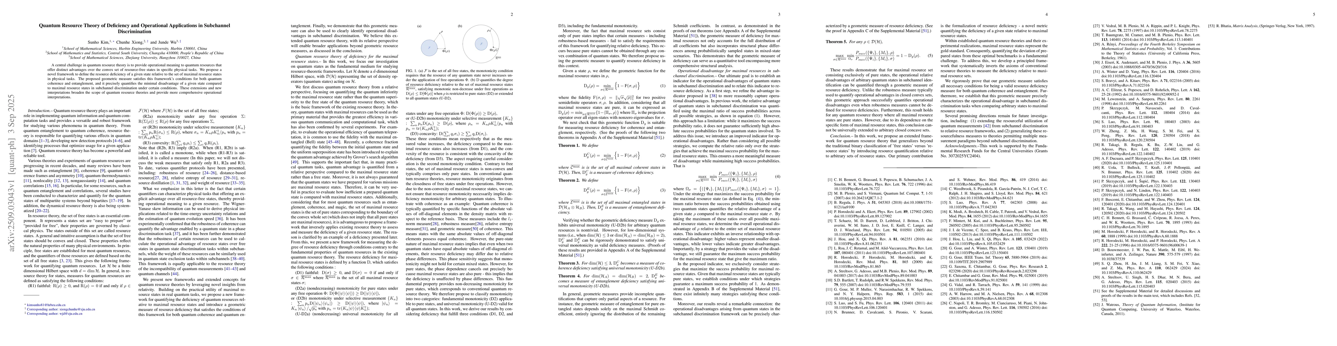 A central challenge in quantum resource theory is to provide operational meaning to quantum resources that offer distinct advantages over the convex set of resource-free states in specific physical tasks. We propose a novel framework to define the resource deficiency of a given state relative to the set of maximal resource states in physical tasks. The proposed geometric measure satisfies this framework's conditions for both quantum coherence and entanglement, and it precisely quantifies the minimal disadvantage of a given state compared to maximal resource states in subchannel discrimination under certain conditions. These extensions and new interpretations broaden the scope of quantum resource theories and provide more comprehensive operational interpretations.