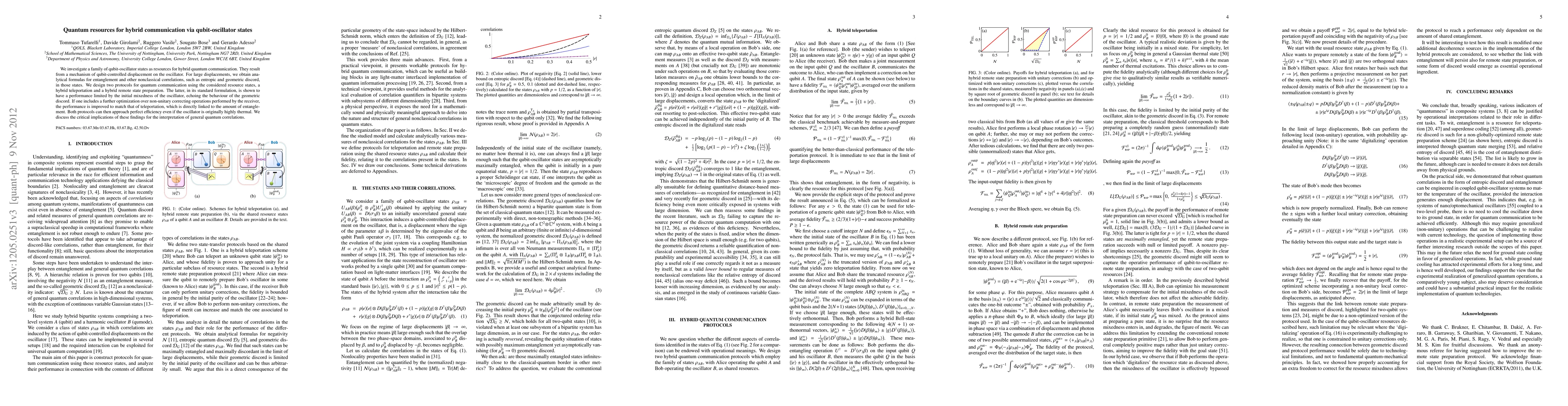 This paper explores qubit-oscillator states for hybrid quantum communication, deriving analytical formulas for entanglement and nonclassical correlations. It proposes two communication protocols, showing that optimization can improve performance and approach perfect efficiency, thus impacting the interpretation of quantum correlations.