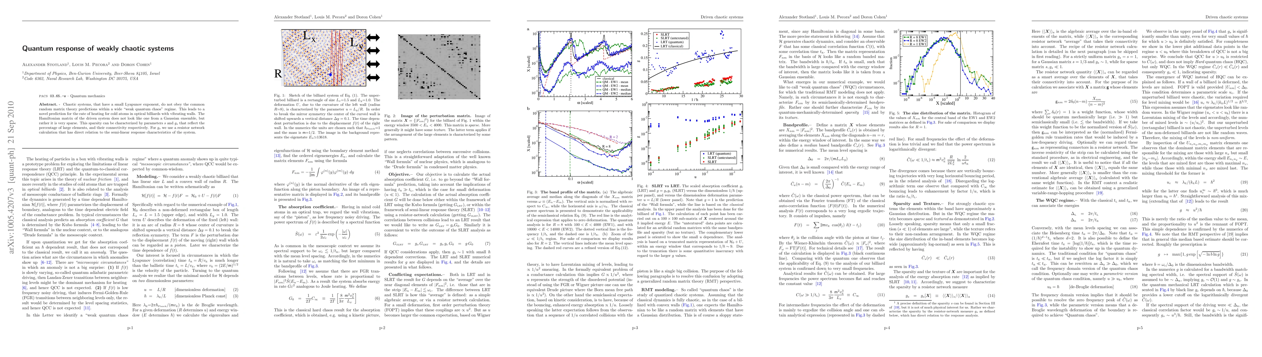 This paper explores the quantum response of weakly chaotic systems, revealing deviations from random matrix theory predictions in the "weak quantum chaos" regime. It introduces a novel heating rate prediction for cold atoms in optical billiards with vibrating walls, characterized by a sparse Hamiltonian matrix defined by parameters $s$ and $g$.