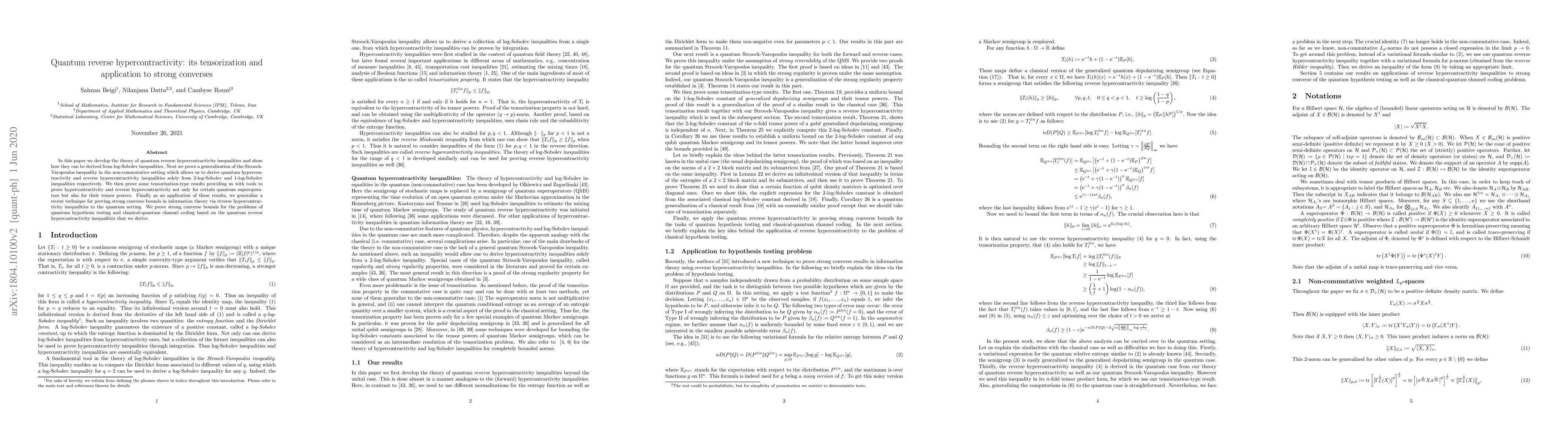 In this paper we develop the theory of quantum reverse hypercontractivity inequalities and show how they can be derived from log-Sobolev inequalities. Next we prove a generalization of the Stroock-Varopoulos inequality in the non-commutative setting which allows us to derive quantum hypercontractivity and reverse hypercontractivity inequalities solely from $2$-log-Sobolev and $1$-log-Sobolev inequalities respectively. We then prove some tensorization-type results providing us with tools to prove hypercontractivity and reverse hypercontractivity not only for certain quantum superoperators but also for their tensor powers. Finally as an application of these results, we generalize a recent technique for proving strong converse bounds in information theory via reverse hypercontractivity inequalities to the quantum setting. We prove strong converse bounds for the problems of quantum hypothesis testing and classical-quantum channel coding based on the quantum reverse hypercontractivity inequalities that we derive.