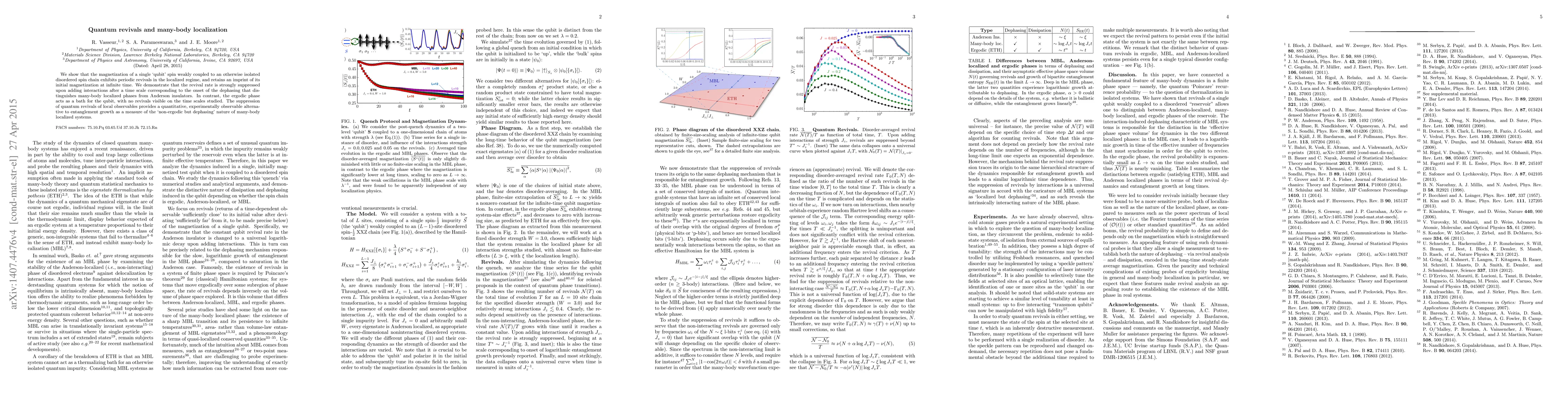 We show that the magnetization of a single `qubit' spin weakly coupled to an otherwise isolated disordered spin chain exhibits periodic revivals in the localized regime, and retains an imprint of its initial magnetization at infinite time. We demonstrate that the revival rate is strongly suppressed upon adding interactions after a time scale corresponding to the onset of the dephasing that distinguishes many-body localized phases from Anderson insulators. In contrast, the ergodic phase acts as a bath for the qubit, with no revivals visible on the time scales studied. The suppression of quantum revivals of local observables provides a quantitative, experimentally observable alternative to entanglement growth as a measure of the `non-ergodic but dephasing' nature of many-body localized systems.
