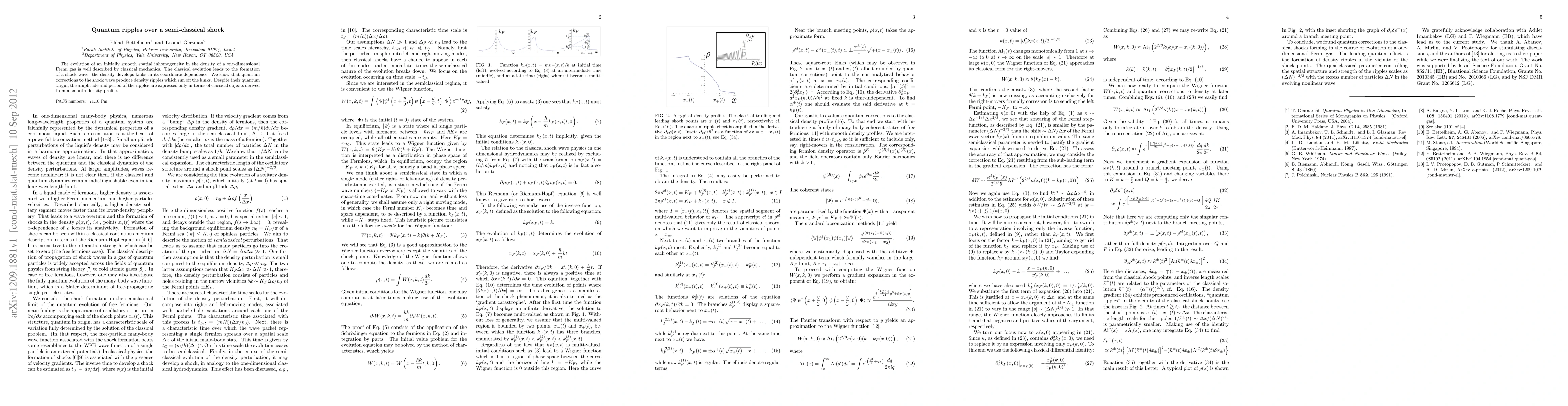 This research demonstrates that quantum corrections to the classical evolution of a Fermi gas shock wave generate ripples in the density profile, with their amplitude and period determined purely by classical parameters derived from the initial smooth density. These quantum ripples propagate away from the classical shock wave kinks.