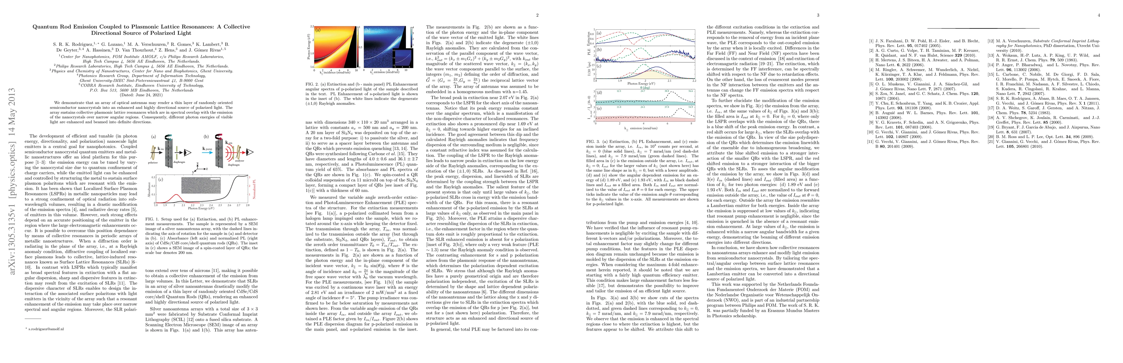This paper shows that an array of optical antennas can transform randomly oriented semiconductor nanocrystals into a highly directional source of polarized light by sustaining collective plasmonic lattice resonances that overlap with the nanocrystals' emission spectrum, enhancing and directing different photon energies into specific angles.