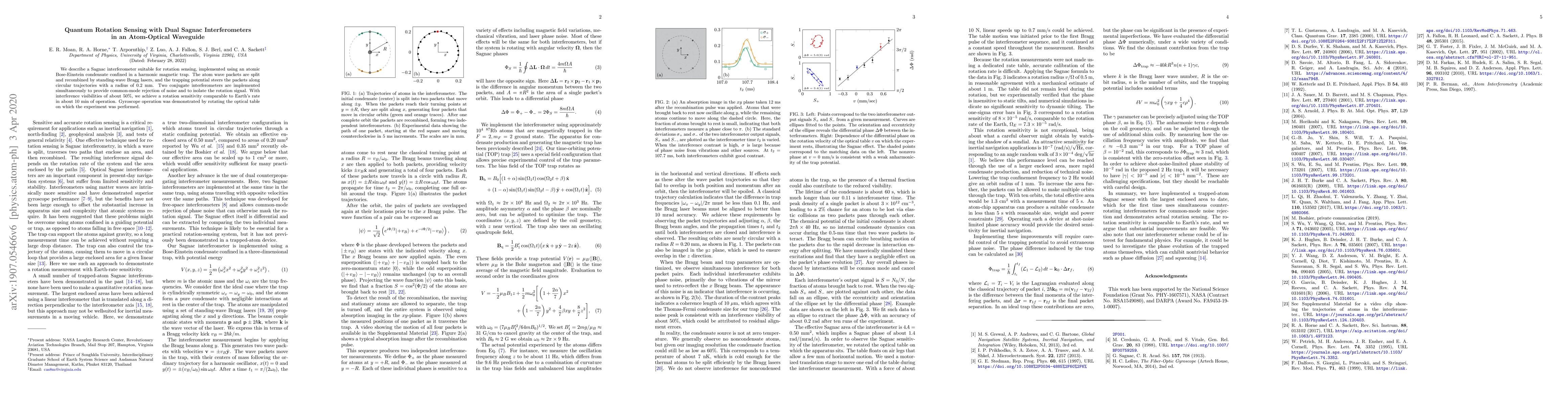 Sensitive and accurate rotation sensing is a critical requirement for applications such as inertial navigation [1], north-finding [2], geophysical analysis [3], and tests of general relativity [4]. One effective technique used for rotation sensing is Sagnac interferometry, in which a wave is split, traverses two paths that enclose an area, and then recombined. The resulting interference signal depends on the rotation rate of the system and the area enclosed by the paths [5]. Optical Sagnac interferometers are an important component in present-day navigation systems [6], but suffer from limited sensitivity and stability. Interferometers using matter waves are intrinsically more sensitive and have demonstrated superior gyroscope performance [7-9], but the benefits have not been large enough to offset the substantial increase in apparatus size and complexity that atomic systems require. It has long been hoped that these problems might be overcome using atoms confined in a guiding potential or trap, as opposed to atoms falling in free space [10-12]. This allows the atoms to be supported against gravity, so a long measurement time can be achieved without requiring a large drop distance. The guiding potential can also be used to control the trajectory of the atoms, causing them to move in a circular loop that provides the optimum enclosed area for a given linear size [13]. Here we use such an approach to demonstrate a rotation measurement with Earth-rate sensitivity.