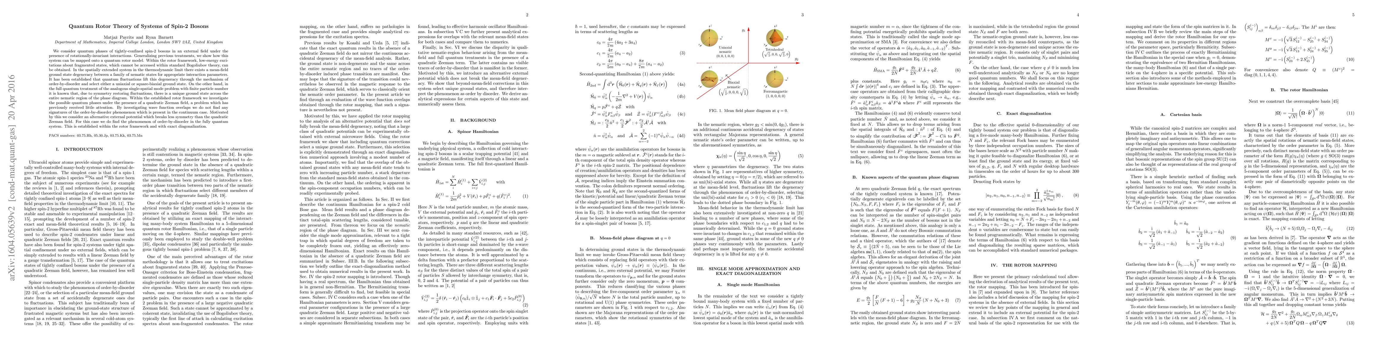 We consider quantum phases of tightly-confined spin-2 bosons in an external field under the presence of rotationally-invariant interactions. Generalizing previous treatments, we show how this system can be mapped onto a quantum rotor model. Within the rotor framework, low-energy excitations about fragmented states, which cannot be accessed within standard Bogoliubov theory, can be obtained. In the spatially extended system in the thermodynamic limit there exists a mean-field ground state degeneracy between a family of nematic states for appropriate interaction parameters. It has been established that quantum fluctuations lift this degeneracy through the mechanism of order-by-disorder and select either a uniaxial or square-biaxial ground state. On the other hand, in the full quantum treatment of the analogous single-spatial mode problem with finite particle number it is known that, due to symmetry restoring fluctuations, there is a unique ground state across the entire nematic region of the phase diagram. Within the established rotor framework we investigate the possible quantum phases under the presence of a quadratic Zeeman field, a problem which has previously received little attention. By investigating wave function overlaps we do not find any signatures of the order-by-disorder phenomenon which is present in the continuum case. Motivated by this we consider an alternative external potential which breaks less symmetry than the quadratic Zeeman field. For this case we do find the phenomenon of order-by-disorder in the fully quantum system. This is established within the rotor framework and with exact diagonalization.