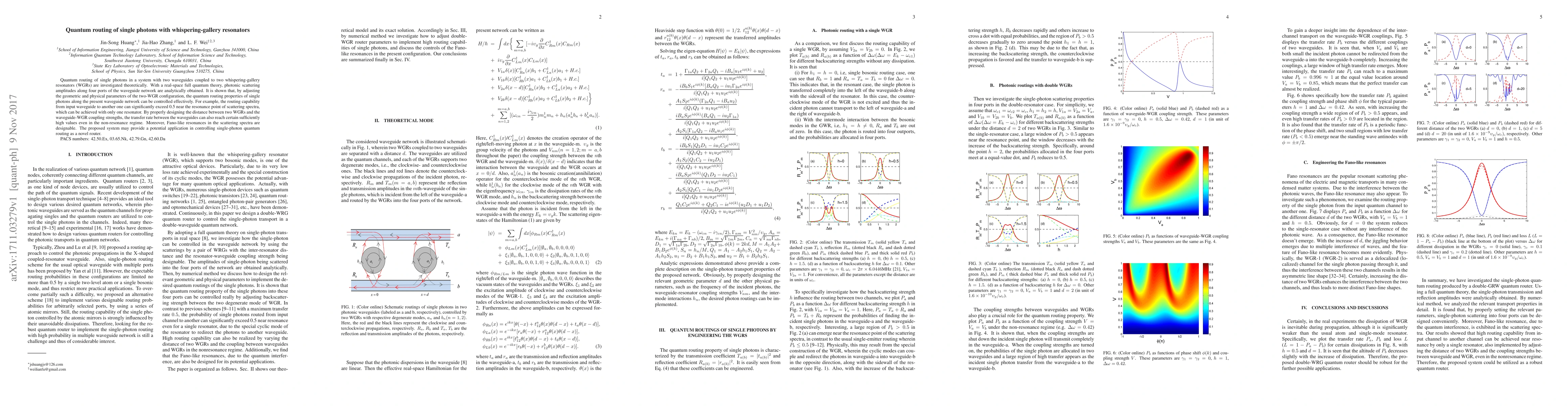 Quantum routing of single photons in a system with two waveguides coupled to two whispering-gallery resonators (WGRs) are investigated theoretically. With a real-space full quantum theory, photonic scattering amplitudes along four ports of the waveguide network are analytically obtained. It is shown that, by adjusting the geometric and physical parameters of the two-WGR configuration, the quantum routing properties of single photons along the present waveguide network can be controlled effectively. For example, the routing capability from input waveguide to another one can significantly exceed 0.5 near the resonance point of scattering spectra, which can be achieved with only one resonator. By properly designing the distance between two WGRs and the waveguide-WGR coupling strengths, the transfer rate between the waveguides can also reach certain sufficiently high values even in the non-resonance regime. Moreover, Fano-like resonances in the scattering spectra are designable. The proposed system may provide a potential application in controlling single-photon quantum routing as a novel router.