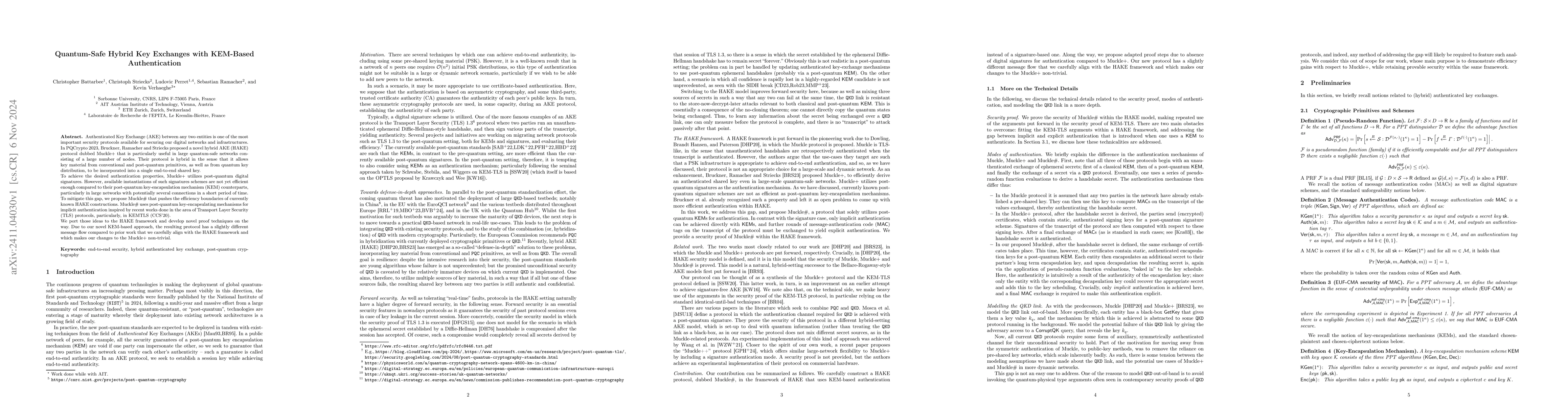 This paper proposes Muckle#, a more efficient hybrid authenticated key exchange protocol for quantum-safe networks, addressing the inefficiency of post-quantum digital signatures. It leverages post-quantum key-encapsulation mechanisms for implicit authentication, inspired by KEMTLS, and introduces novel proof techniques for its security.