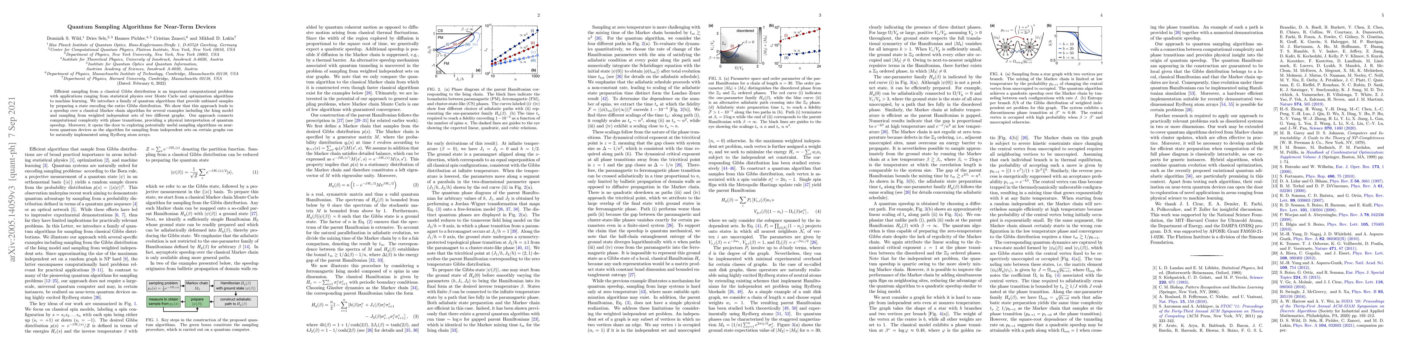 This paper introduces quantum algorithms for efficient sampling from classical Gibbs distributions, demonstrating speedup over classical Markov chains for problems like the Ising model and weighted independent sets. The approach connects computational complexity with phase transitions and offers potential for practical implementation on near-term quantum devices.