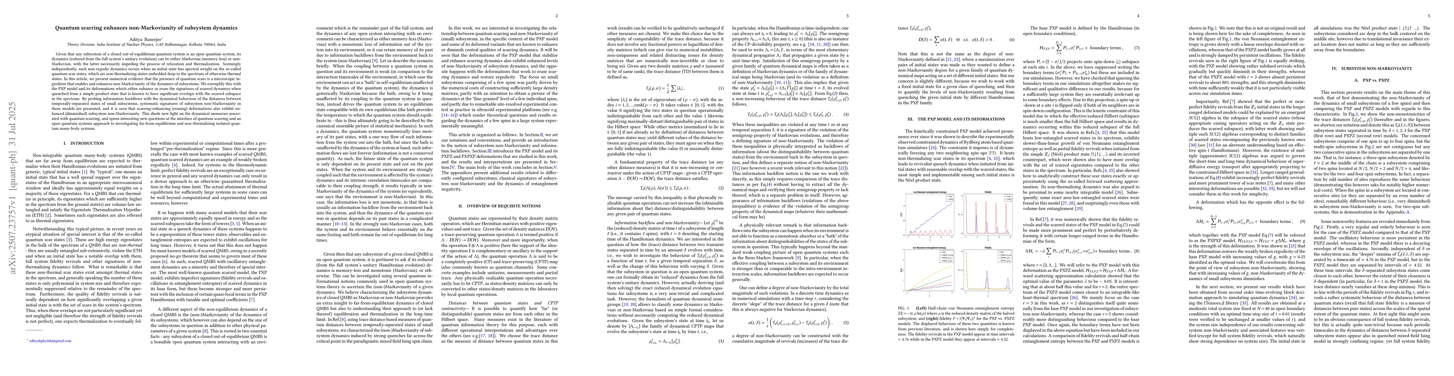 Given that any subsystem of a closed out-of-equilibrium quantum system is an open quantum system, its dynamics (reduced from the full system's unitary evolution) can be either Markovian (memory-less) or non-Markovian, with the latter necessarily impeding the process of relaxation and thermalization. Seemingly independently, such non-ergodic dynamics occurs when an initial state has spectral weight on the so-called quantum scar states, which are non-thermalizing states embedded deep in the spectrum of otherwise thermal states. In this article, we present numerical evidence that the presence of quantum scars is a microscopic ingredient that enables and enhances non-Markovianity of the dynamics of subsystems. We exemplify this with the PXP model and its deformations which either enhance or erase the signatures of scarred dynamics when quenched from a simple product state that is known to have significant overlaps with the scarred subspace in the spectrum. By probing information backflows with the dynamical behaviour of the distances between temporally-separated states of small subsystems, systematic signatures of subsystem non-Markovianity in these models are presented, and it is seen that scarring-enhancing (erasing) deformations also exhibit enhanced (diminished) subsystem non-Markovianity. This sheds new light on the dynamical memories associated with quantum scarring, and opens interesting new questions at the interface of quantum scarring and an open quantum systems approach to investigating far-from-equilibrium and non-thermalizing isolated quantum many-body systems.