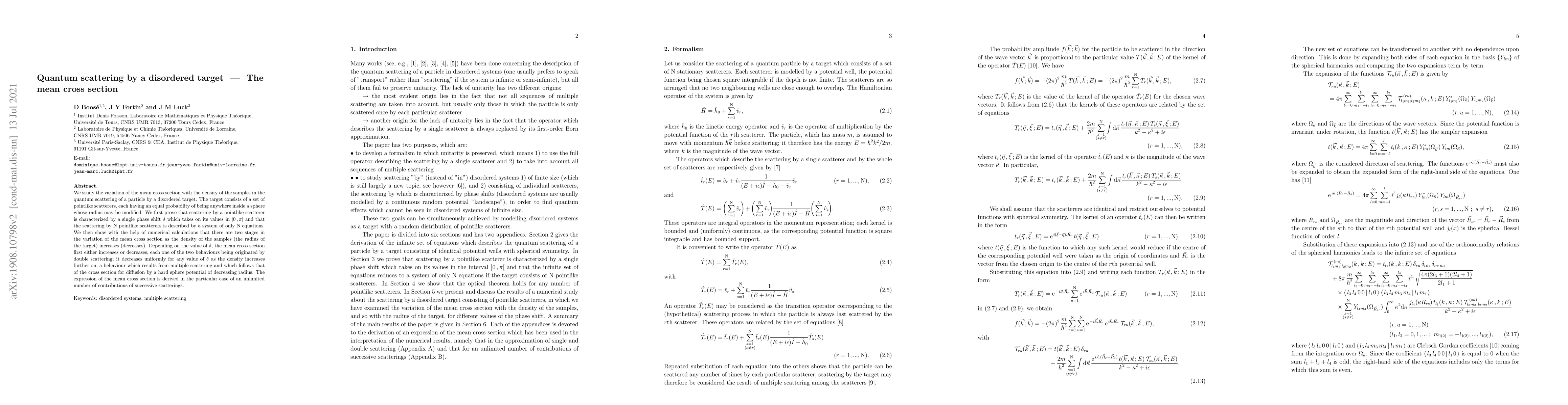 We study the variation of the mean cross section with the density of the samples in the quantum scattering of a particle by a disordered target. The target consists of a set of pointlike scatterers, each having an equal probability of being anywhere inside a sphere whose radius may be modified. We first prove that scattering by a pointlike scatterer is characterized by a single phase shift ${\delta}$ which takes on its values in $]0 \, , {\pi}[$ and that the scattering by ${\rm N}$ pointlike scatterers is described by a system of only ${\rm N}$ equations. We then show with the help of numerical calculations that there are two stages in the variation of the mean cross section as the density of the samples (the radius of the target) increases (decreases). Depending on the value of ${\delta}$, the mean cross section first either increases or decreases, each one of the two behaviours being originated by double scattering; it decreases uniformly for any value of ${\delta}$ as the density increases further on, a behaviour which results from multiple scattering and which follows that of the cross section for diffusion by a hard sphere potential of decreasing radius. The expression of the mean cross section is derived in the particular case of an unlimited number of contributions of successive scatterings.