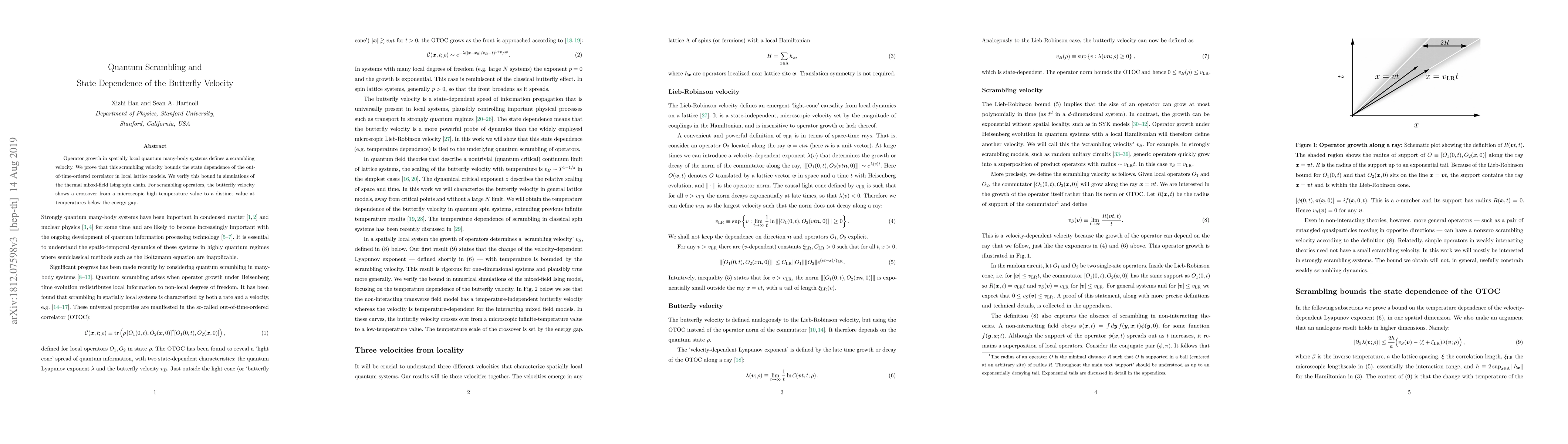 Operator growth in spatially local quantum many-body systems defines a scrambling velocity. We prove that this scrambling velocity bounds the state dependence of the out-of-time-ordered correlator in local lattice models. We verify this bound in simulations of the thermal mixed-field Ising spin chain. For scrambling operators, the butterfly velocity shows a crossover from a microscopic high temperature value to a distinct value at temperatures below the energy gap.