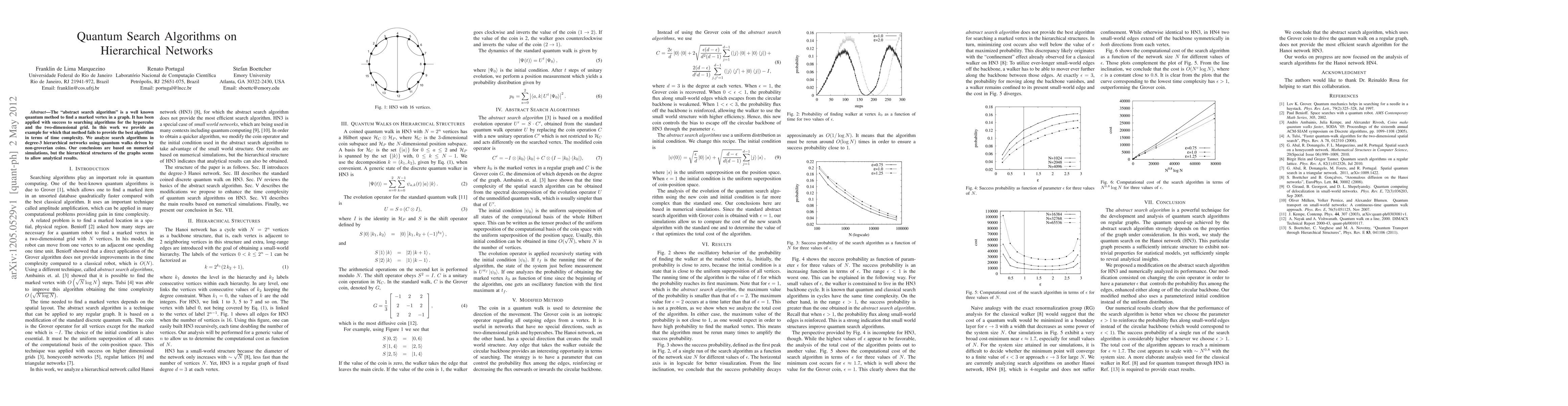 The "abstract search algorithm" is a well known quantum method to find a marked vertex in a graph. It has been applied with success to searching algorithms for the hypercube and the two-dimensional grid. In this work we provide an example for which that method fails to provide the best algorithm in terms of time complexity. We analyze search algorithms in degree-3 hierarchical networks using quantum walks driven by non-groverian coins. Our conclusions are based on numerical simulations, but the hierarchical structures of the graphs seems to allow analytical results.
