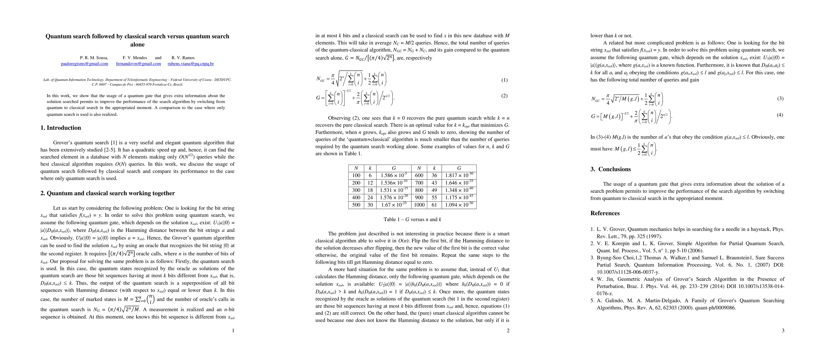 In this work, we show that the usage of a quantum gate that gives extra information about the solution searched permits to improve the performance of the search algorithm by switching from quantum to classical search in the appropriated moment. A comparison to the case where only quantum search is used is also realized.