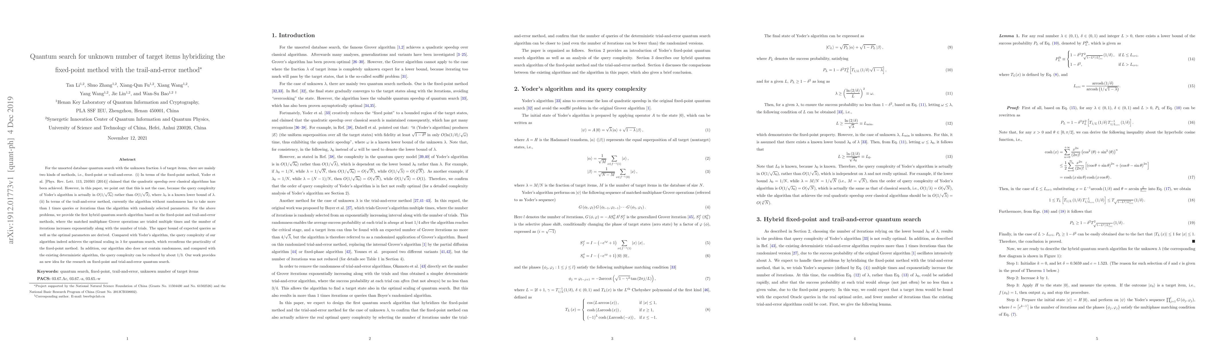 This paper critiques Yoder's fixed-point quantum search algorithm, showing it does not achieve the claimed quadratic speedup, and proposes a hybrid algorithm combining fixed-point and trail-and-error methods, achieving optimal query complexity and reducing complexity by about 1/3 compared to existing deterministic algorithms.