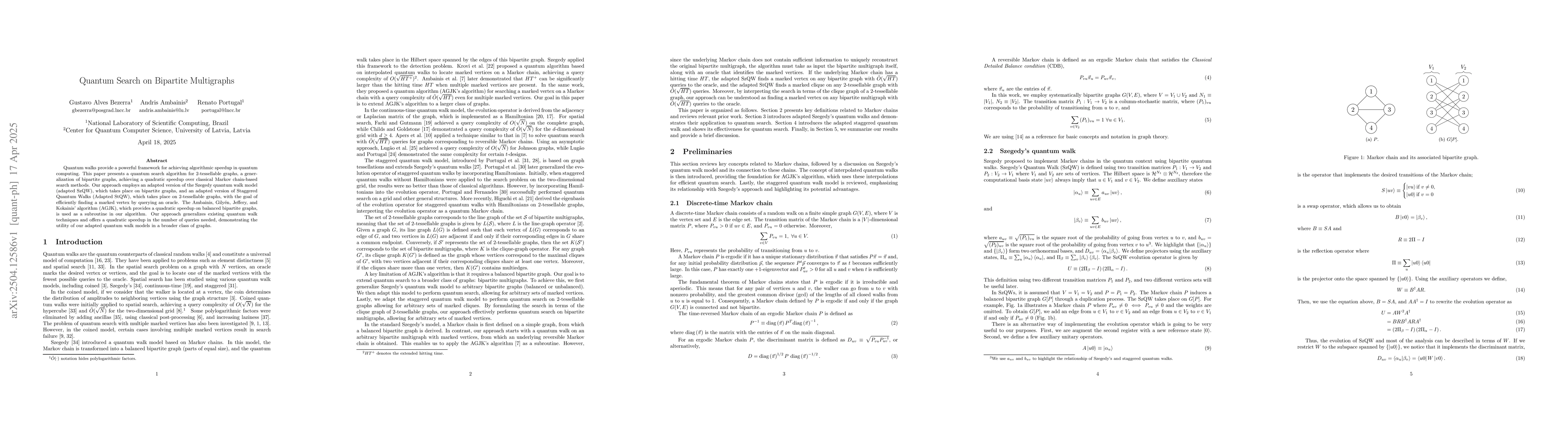 Researchers developed a quantum search algorithm for bipartite multigraphs, achieving a quadratic speedup over classical methods, showcasing the potential of adapted quantum walk models in a broader class of graphs.