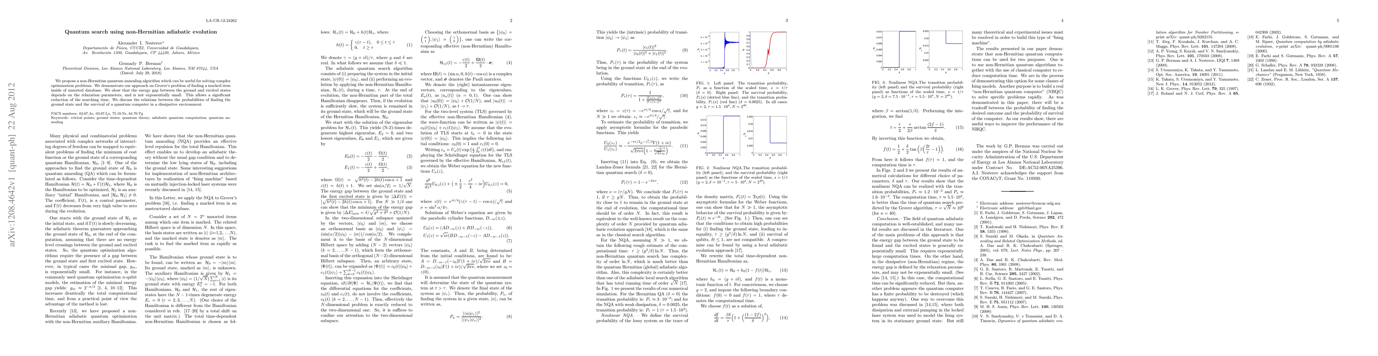 We propose a non-Hermitian quantum annealing algorithm which can be useful for solving complex optimization problems. We demonstrate our approach on Grover's problem of finding a marked item inside of unsorted database. We show that the energy gap between the ground and excited states depends on the relaxation parameters, and is not exponentially small. This allows a significant reduction of the searching time. We discuss the relations between the probabilities of finding the ground state and the survival of a quantum computer in a dissipative environment.