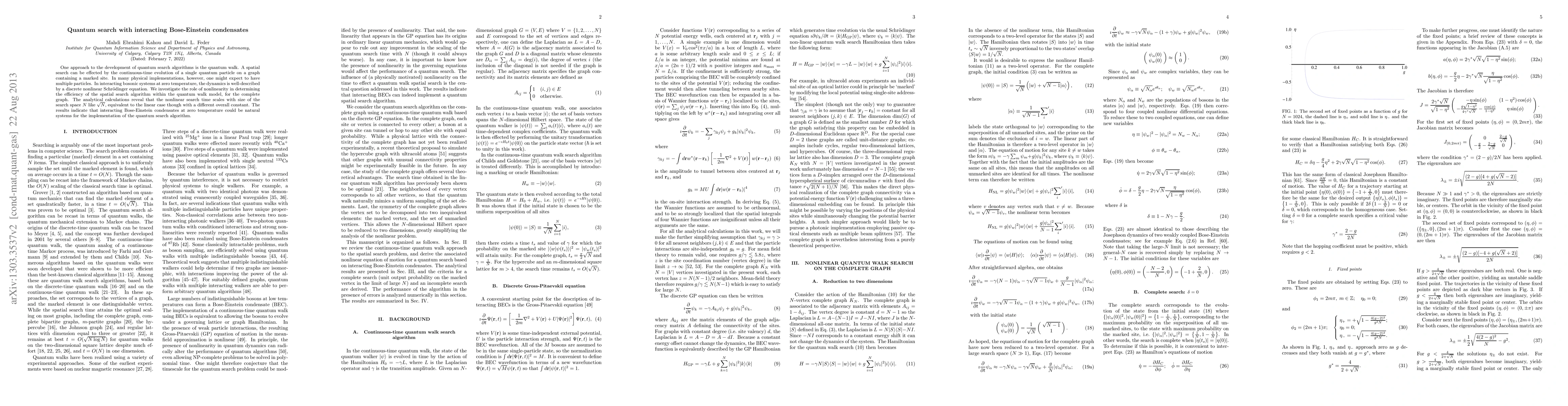 Researchers explored how nonlinearity affects quantum search efficiency in interacting Bose-Einstein condensates at zero temperature, finding that it scales like the square root of N, making these systems suitable for implementing the quantum search algorithm.