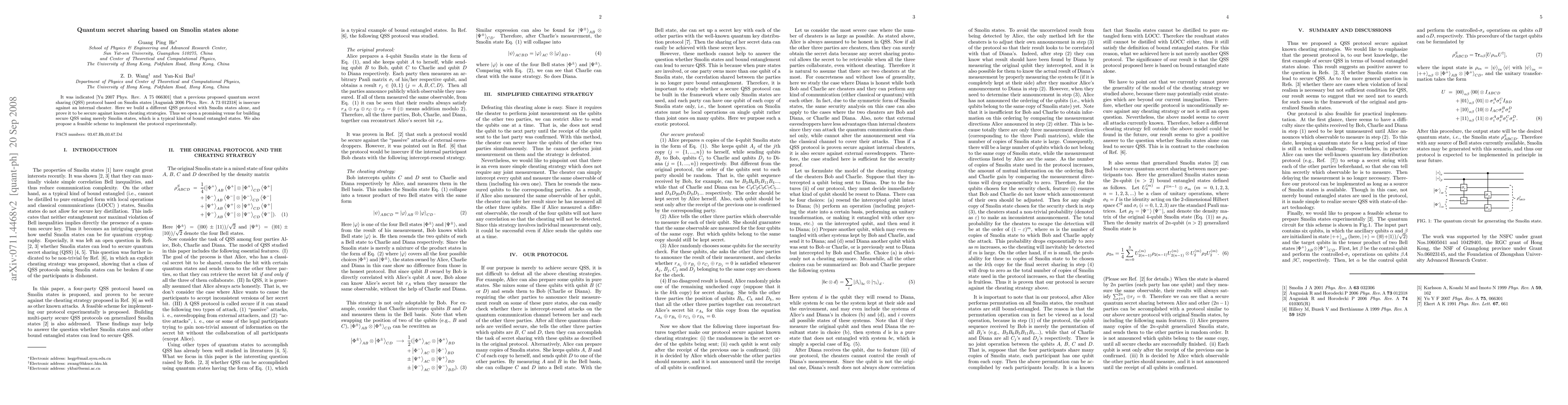 This paper proposes a new quantum secret sharing protocol based solely on Smolin states, proving its security against known cheating strategies, and suggests a practical implementation scheme. The work addresses the insecurity of previous protocols and opens a promising path for secure quantum secret sharing using bound entangled states.