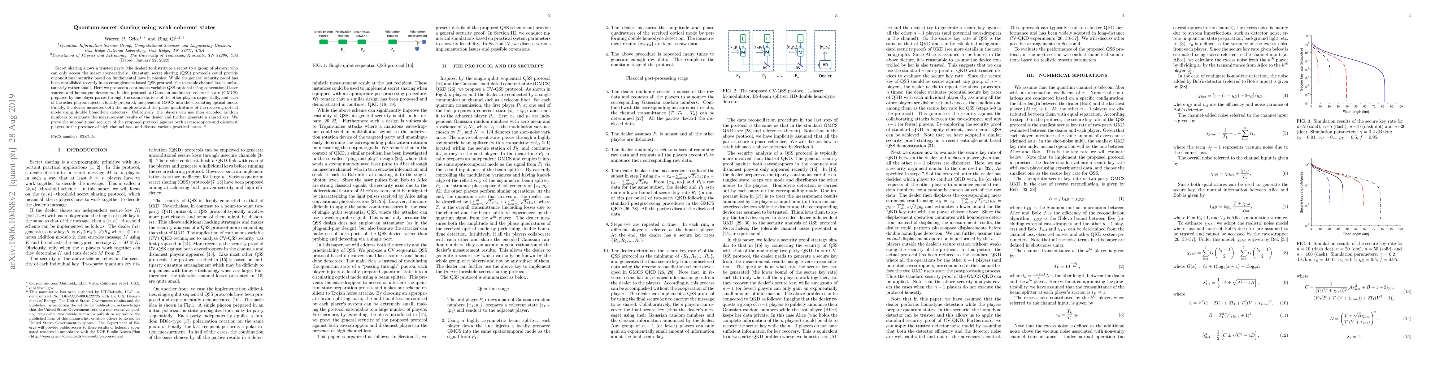 This paper proposes a scalable quantum secret sharing protocol using continuous variable weak coherent states, which is resilient to Trojan horse attacks and can tolerate higher channel loss compared to single photon-based methods. The protocol ensures unconditional security through homodyne detection and is designed to be practical for large groups of players.