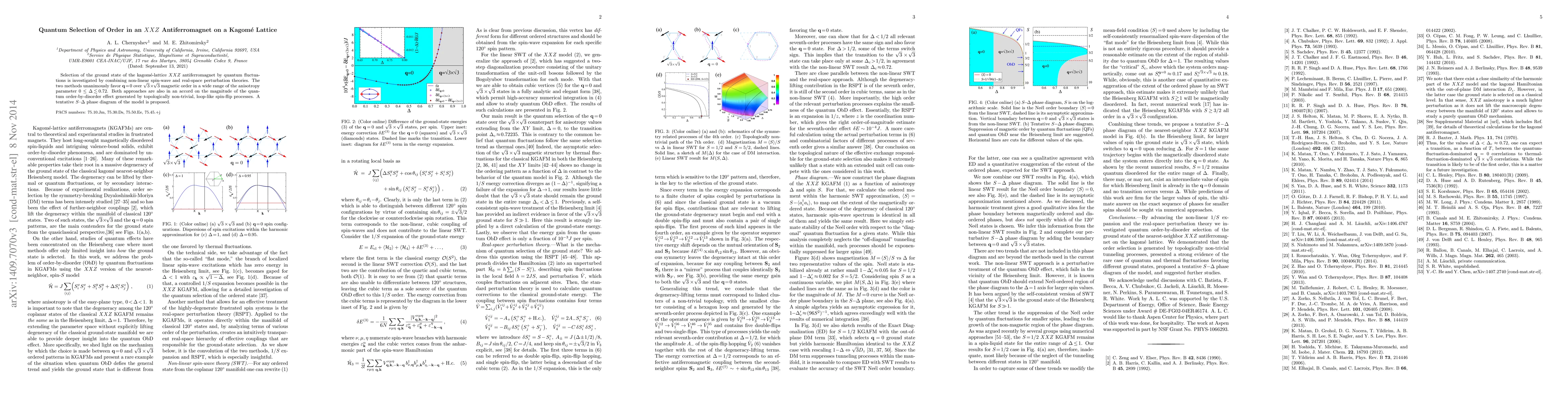 This paper investigates the ground state selection of an $XXZ$ antiferromagnet on a kagomé lattice using non-linear spin-wave and real-space perturbation theories, finding that quantum fluctuations favor ${\bf q}=0$ magnetic order over $\sqrt{3}\times\sqrt{3}$ order across a range of anisotropy parameters. Both methods agree on the quantum order-by-disorder effect magnitude.